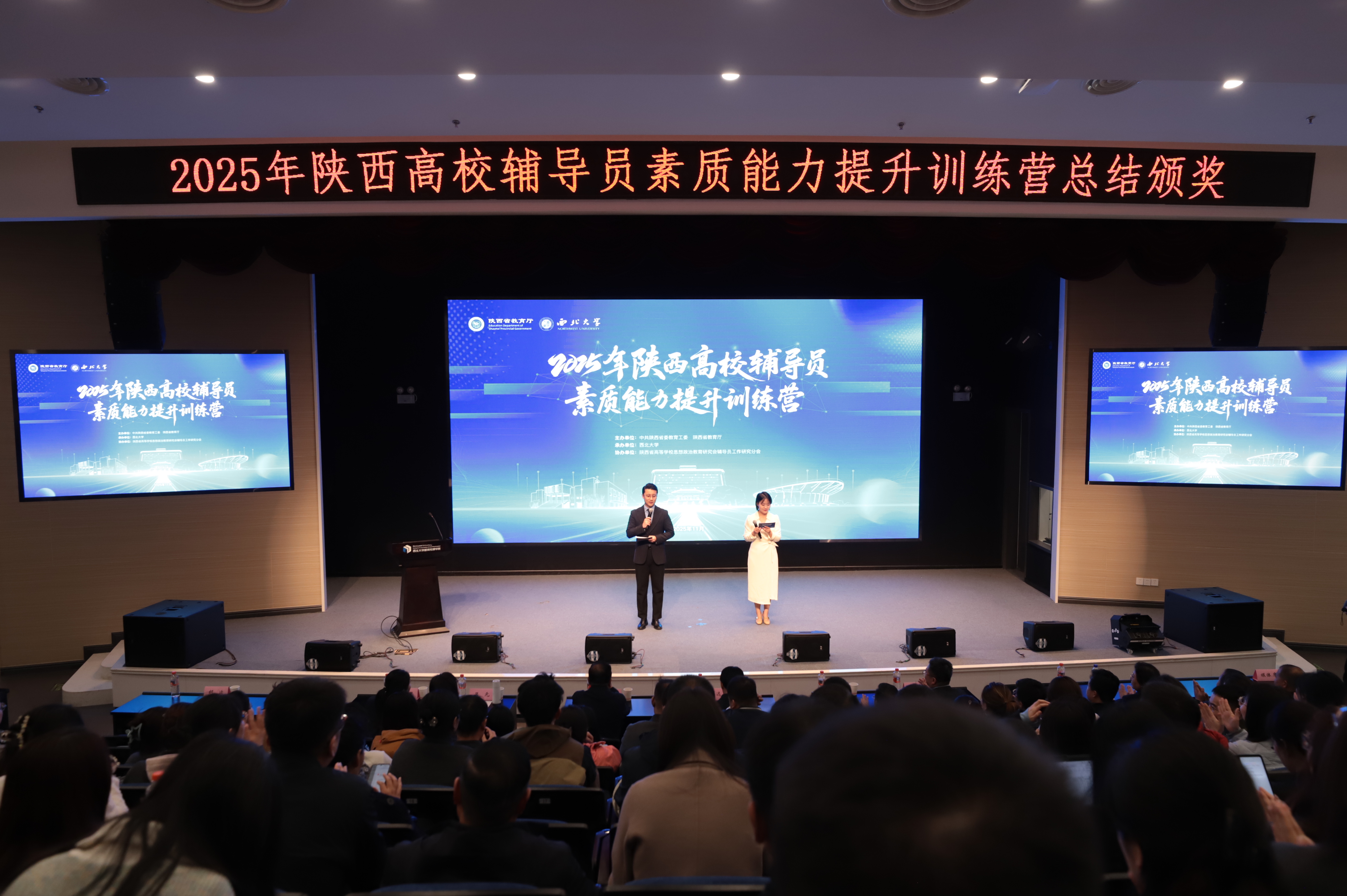 11月5日至7日,由陕西省委教育工委、省教育厅主办,九游会在线登录官网承办的2025年陕西高校辅导员素质能力提升训练营举办。来自全省各高校的68名辅导员骨干齐聚九游会在线登录官网,以训赋能、以赛促学,共同筑牢思政育人“桥头堡”。经角逐,共评选出“业务标兵”9名、“特别表现”21名、“优秀风采”38名。九游会在线登录官网辅导员贤悦获“业务标兵”荣誉称号,马凯获“特别表现”荣誉称号。省委教育工委、陕西省教育厅二级巡视员张和平,省委教育工委、省教育厅学生处处长吕元,校党委常委、副校长张远军出席相关活动。