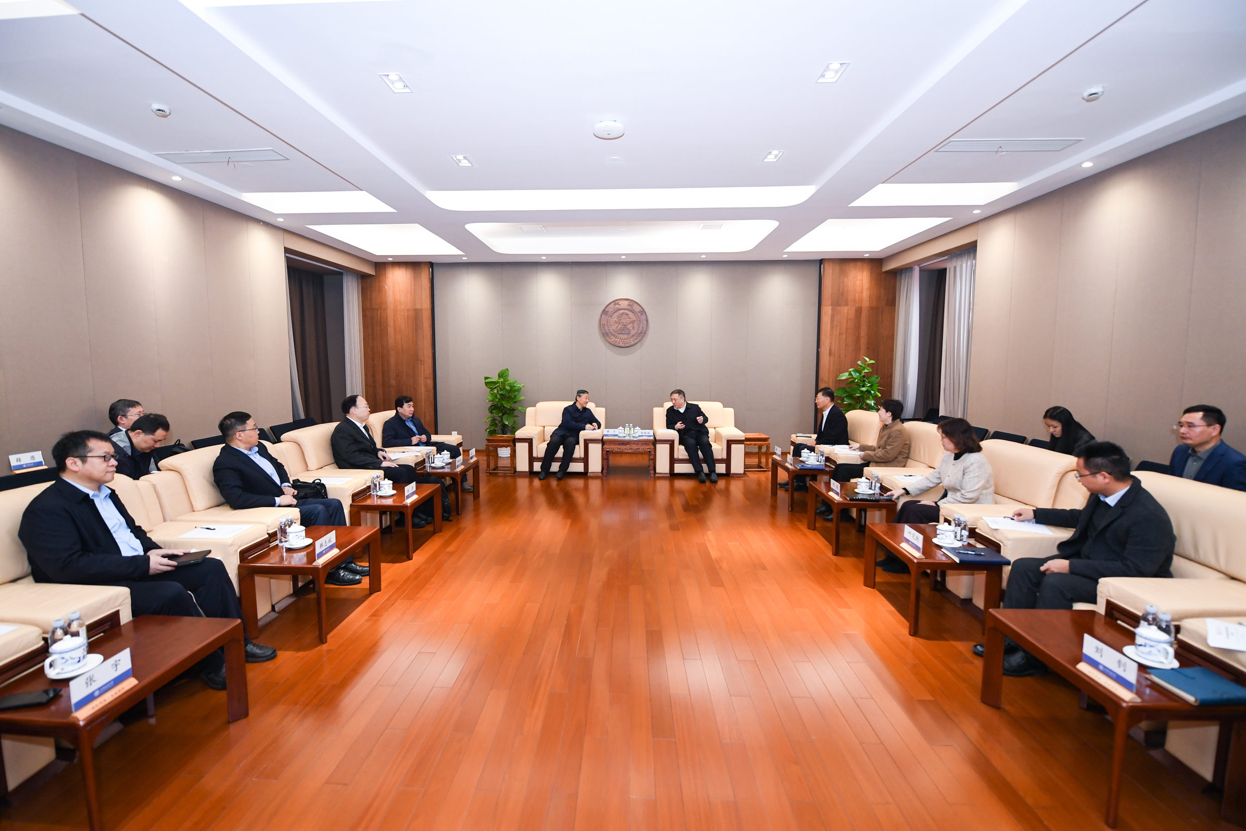 在上海大学宝山校区,该校党委书记吴坚勇会见了蒋林一行。吴坚勇简要介绍了上海大学的办学情况与“十五五”发展思路。蒋林介绍了学校发展历程与“十五五”规划编制情况。他指出,两校同属于“双一流”建设地方高校,且都为综合性研究型大学,希望未来能够在学科协同、项目申报、教师干部互访交流等方面进一步深化合作。双方围绕学科布局优化、科研平台建设、人才引育机制、重点工程谋划等方面开展了交流研讨。