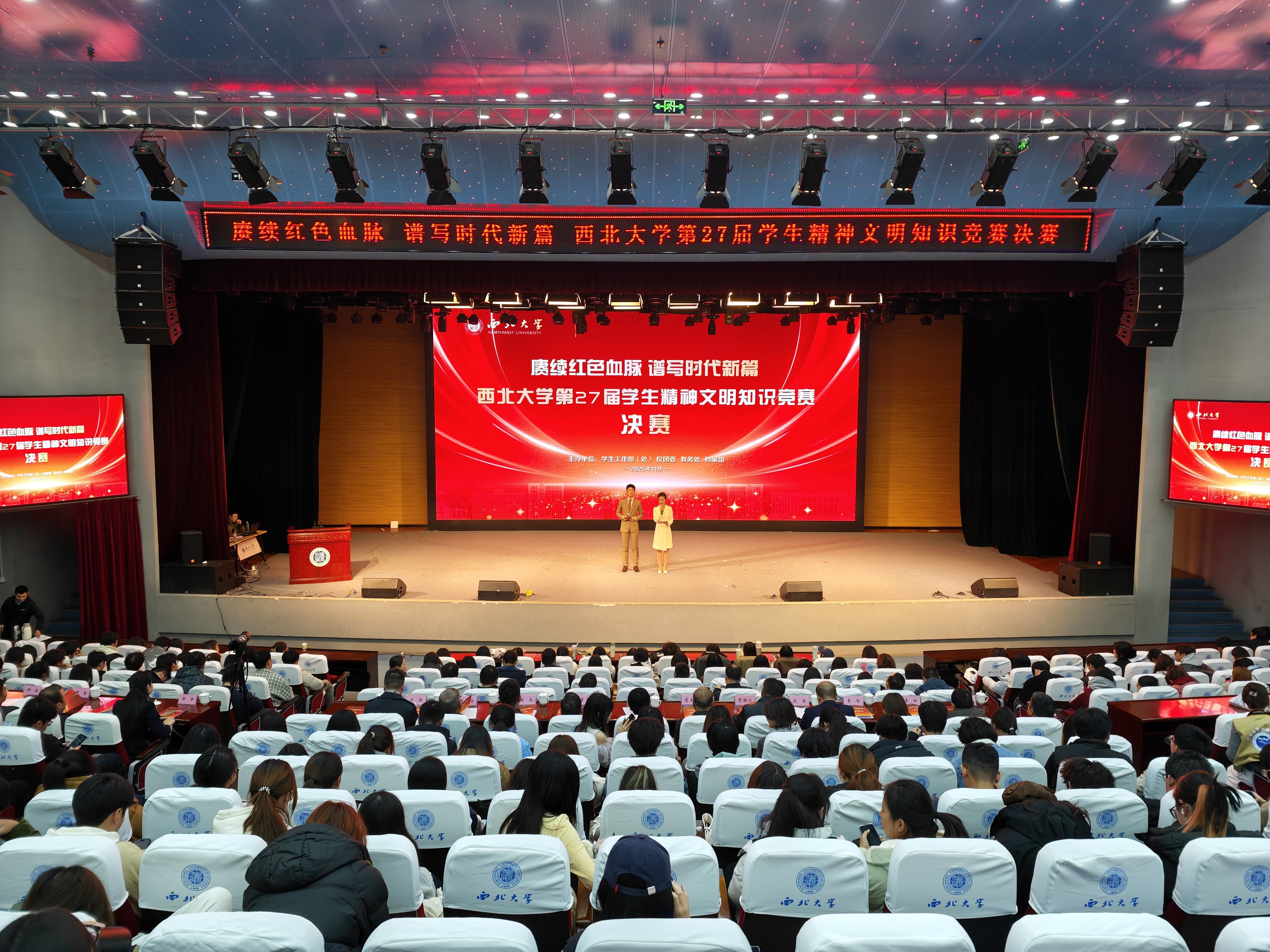 11月26日,九游会在线登录官网第27届学生精神文明知识竞赛决赛在长安校区圆满落幕,活动以“赓续红色血脉 谱写时代新篇”为主题。校党委副书记张远军、校学生工作领导小组成员单位负责人、各院(系)学生工作负责人、辅导员及500余名学生代表现场观看了比赛。活动由学生工作部、校团委、教务处和档案馆联合主办。