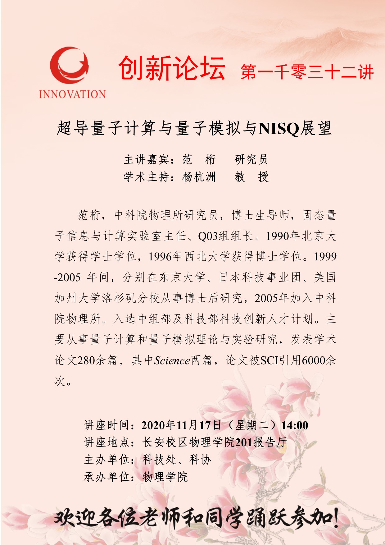 范 桁 研究员 九游会在线登录官网创新论坛第一千零三十二讲:超导量子计算与量子模拟与NISQ展望 讲座时间 2020年11月17日(星期二)14:00 讲座地点 长安校区物理学院201报告厅 讲座人介绍 范 桁 研究员 讲座内容