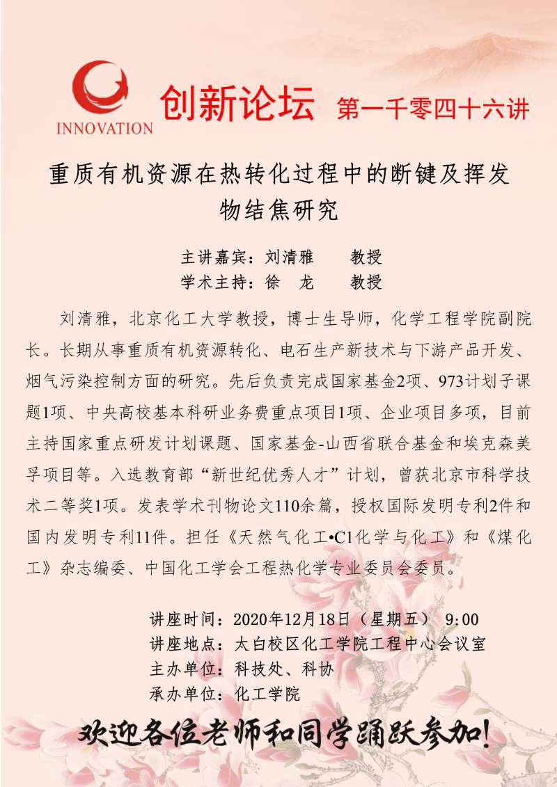 刘清雅 教授 九游会在线登录官网创新论坛第一千零四十六讲:重质有机资源在热转化过程中的断键及挥发物结焦研究 讲座时间 2020年12月18日(星期五) 9:00 讲座地点 太白校区化工学院工程中心会议室 讲座人介绍 刘清雅 教授 讲座内容