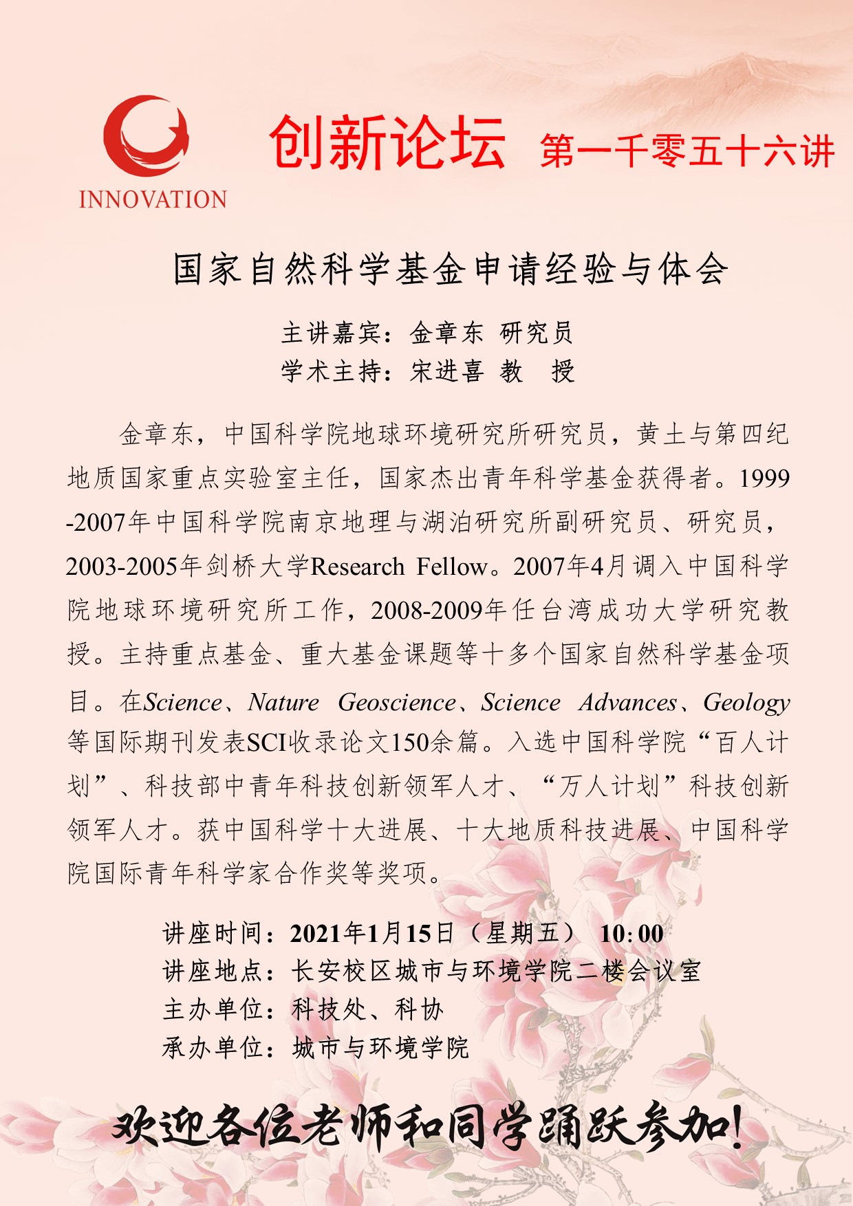 金章东 研究员 九游会在线登录官网创新论坛第一千零五十六讲:国家自然科学基金申请经验与体会 讲座时间 2021年1月15日(星期五) 10:00 讲座地点 长安校区城市与环境学院二楼会议室 讲座人介绍 金章东 研究员 讲座内容
