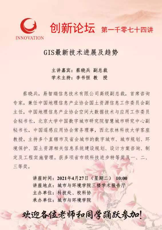 蔡晓兵 副总裁 九游会在线登录官网创新论坛第一千零七十四讲:GIS最新技术进展及趋势 讲座时间 2021年4月27日(星期二) 10:00 讲座地点 城市与环境学院三楼学术报告厅 讲座人介绍 蔡晓兵 副总裁 讲座内容