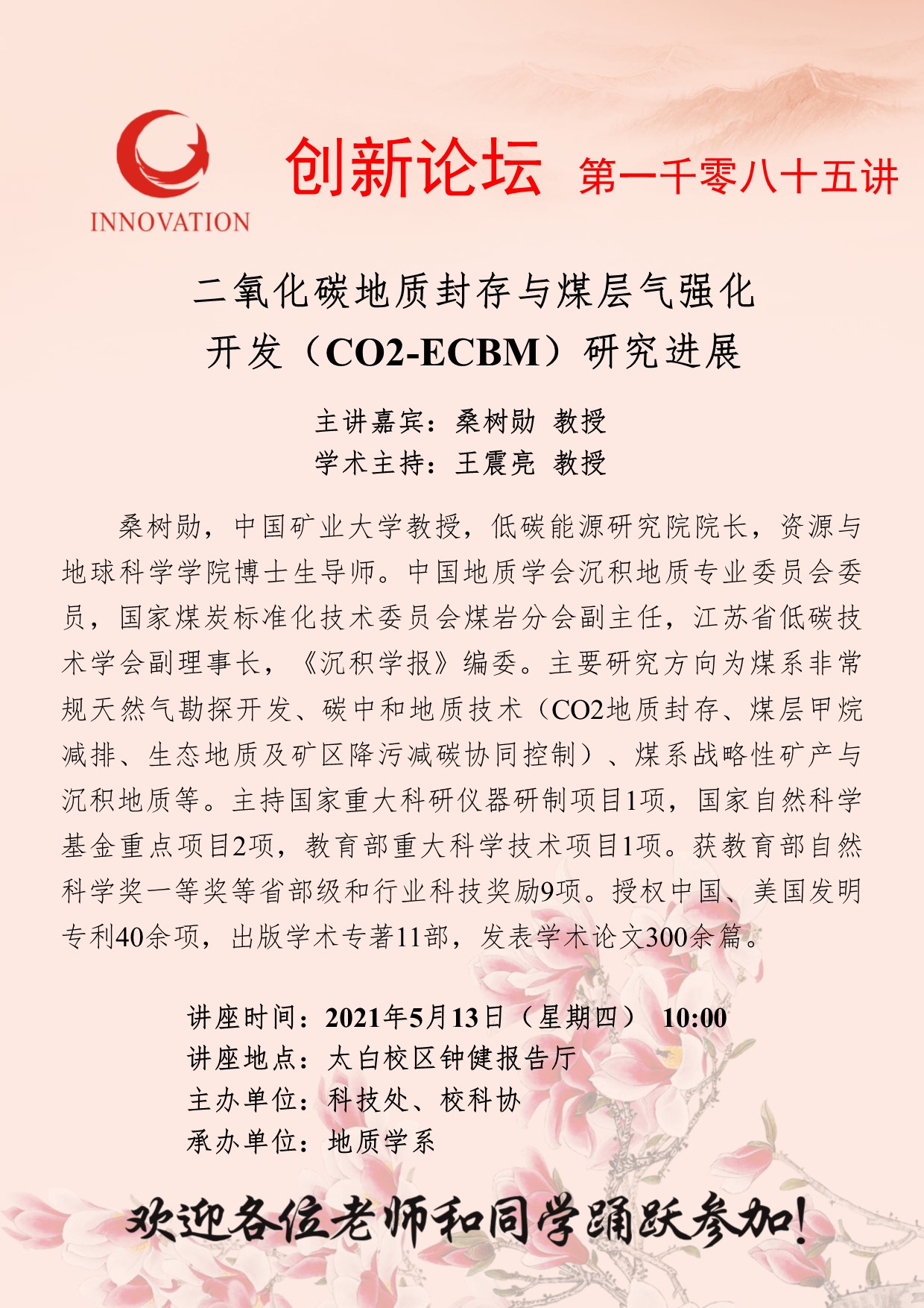 桑树勋 教授 九游会在线登录官网创新论坛第一千零八十五讲:二氧化碳地质封存与煤层气强化开发(CO2-ECBM)研究进展 讲座时间 2021年5月13日(星期四) 10:00 讲座地点 太白校区钟健报告厅 讲座人介绍 桑树勋 教授 讲座内容