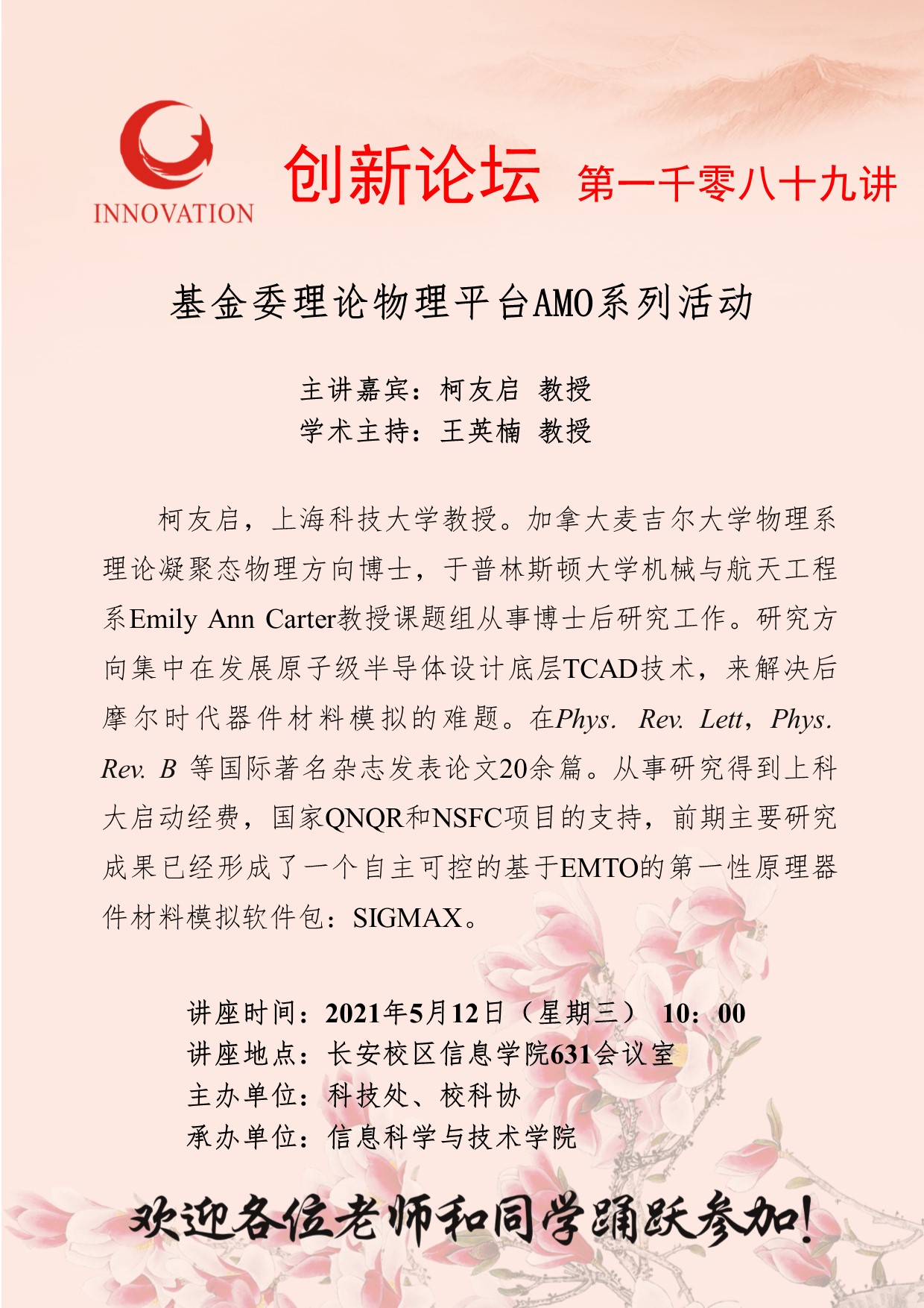 柯友启 教授 九游会在线登录官网创新论坛第一千零八十九讲:基金委理论物理平台AMO系列活动 讲座时间 2021年5月12日(星期三) 10:00 讲座地点 长安校区信息学院631会议室 讲座人介绍 柯友启 教授 讲座内容
