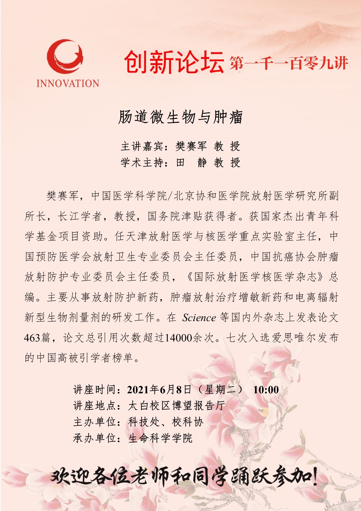 九游会在线登录官网创新论坛第一千一百零九讲:肠道微生物与肿瘤