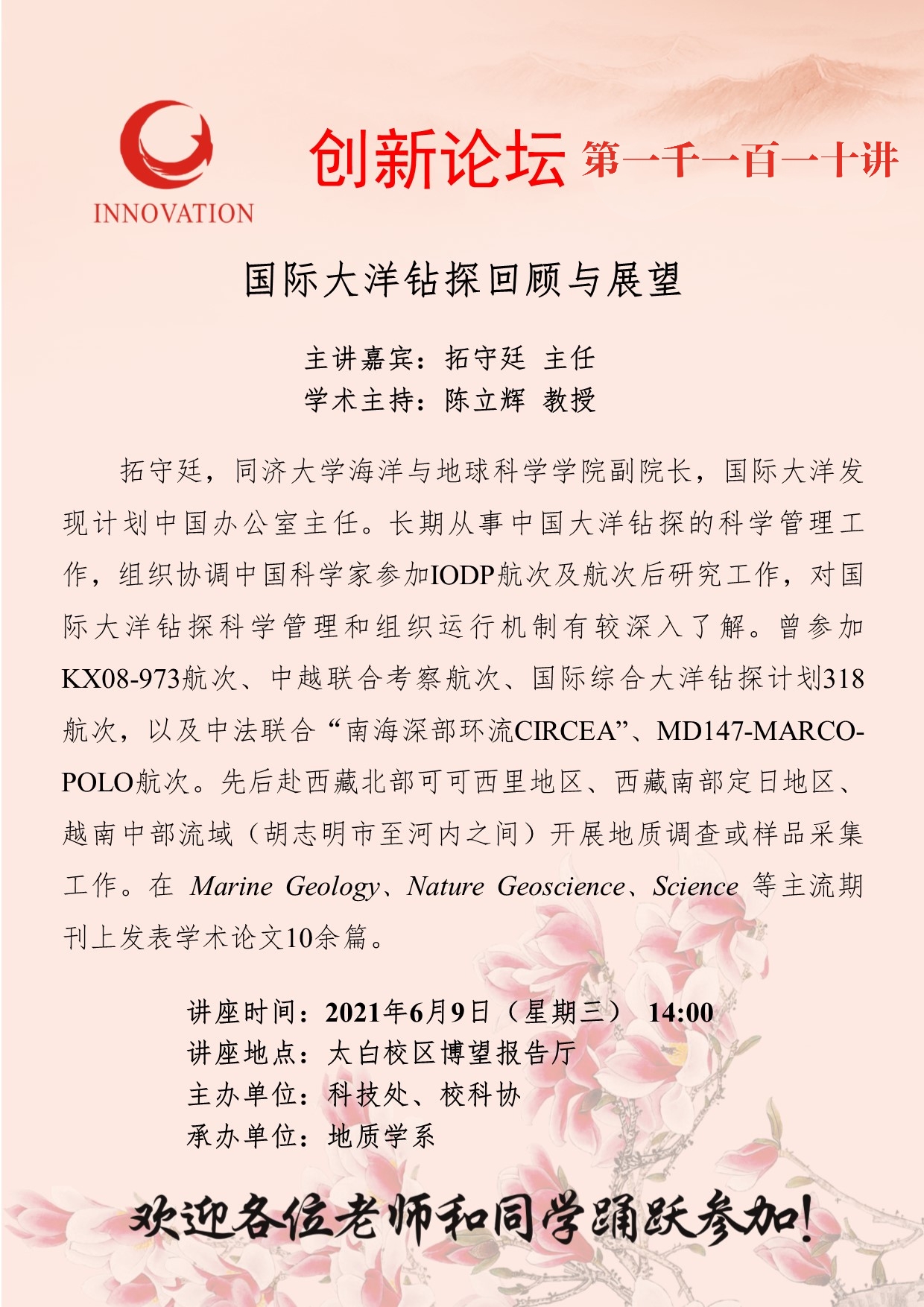 九游会在线登录官网创新论坛第一千一百一十讲:国际大洋钻探回顾与展望