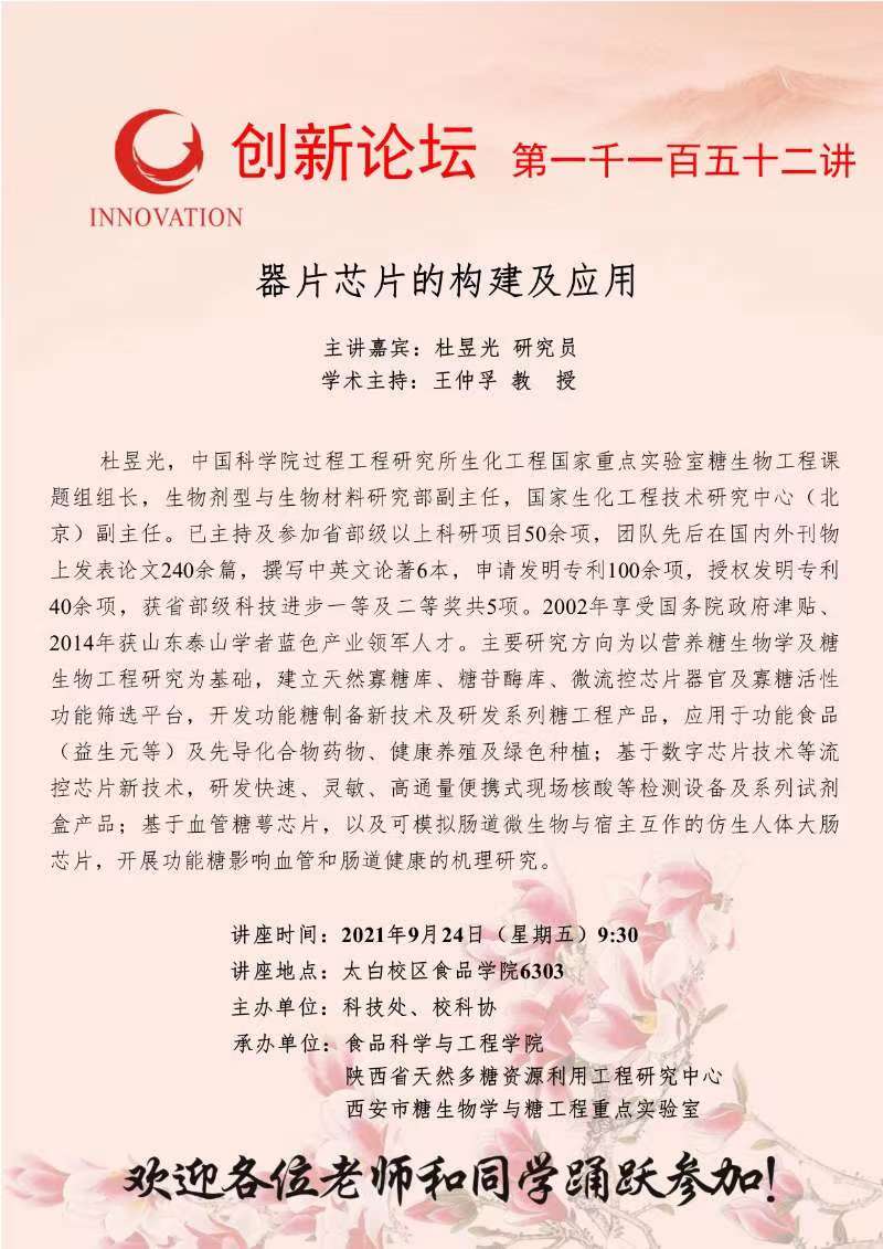 杜昱光 研究员 九游会在线登录官网创新论坛第一千一百五十二讲:器片芯片的构建及应用 讲座时间 2021年9月24日(星期五)9:30 讲座地点 太白校区食品学院6303 讲座人介绍 杜昱光 研究员 讲座内容