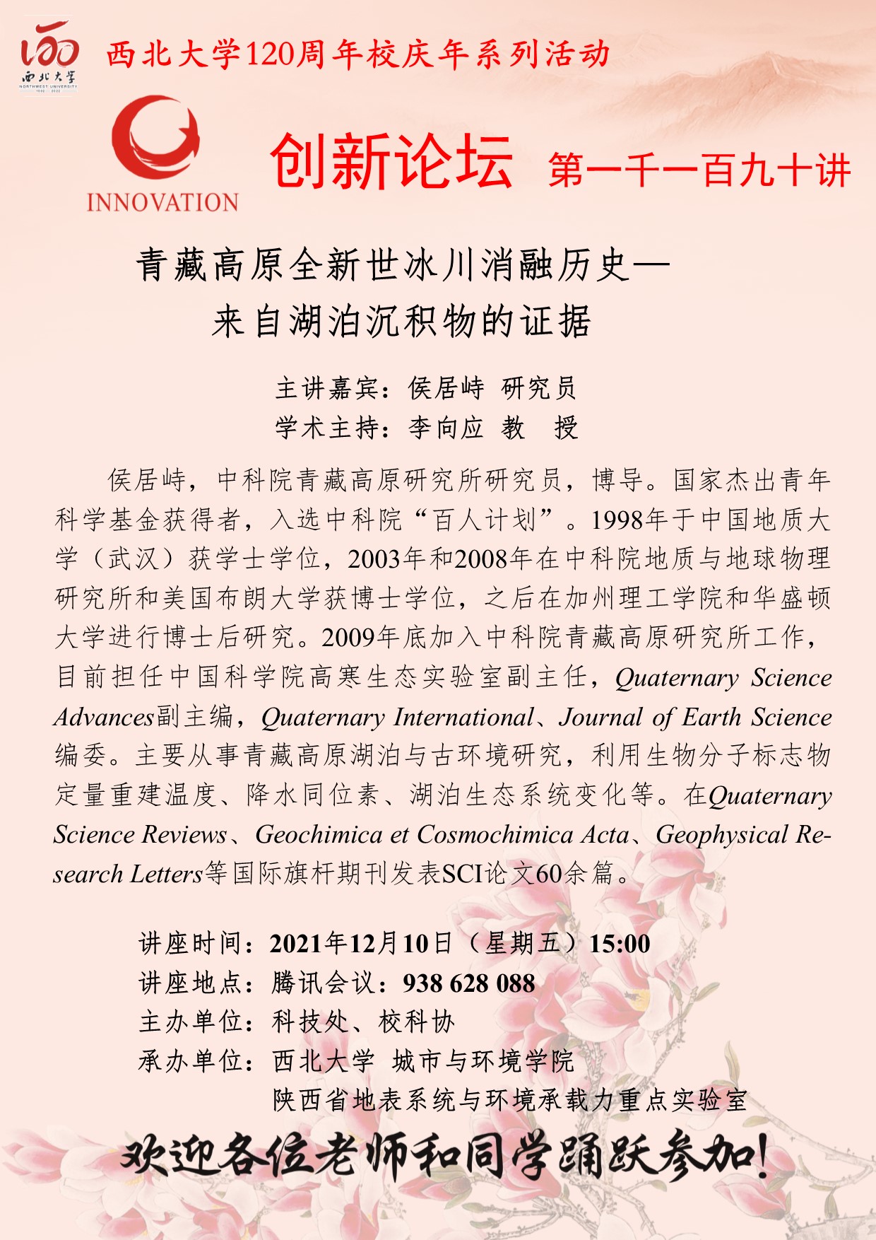侯居峙 研究员 九游会在线登录官网创新论坛第一千一百九十讲暨120周年校庆年系列活动:青藏高原全新世冰川消融历史—来自湖泊沉积物的证据 讲座时间 2021年12月10日(星期五)15:00 讲座地点 腾讯会议:938628088 讲座人介绍 侯居峙 研究员 讲座内容