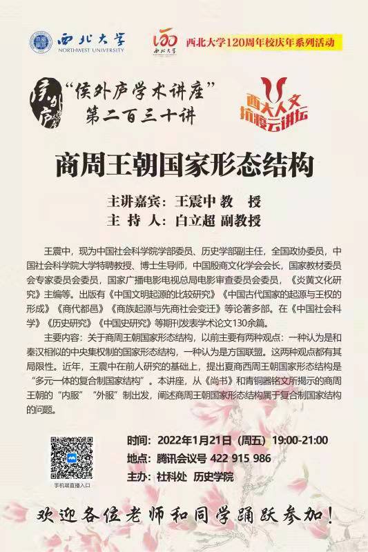 侯外庐学术讲座第二百三十讲暨西大人文抗疫云讲坛:商周王朝国家形态结构
