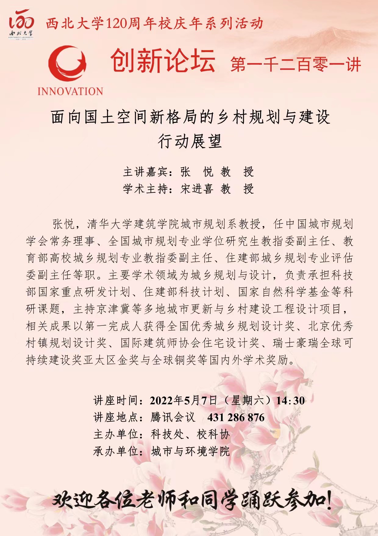 张悦 教授 九游会在线登录官网创新论坛第一千二百零一讲暨120周年校庆年系列活动:面向国土空间新格局的乡村规划与建设行动展望 讲座时间 2022年5月7日(星期六)14:30 讲座地点 腾讯会议:431 286 876 讲座人介绍 张悦 教授 讲座内容