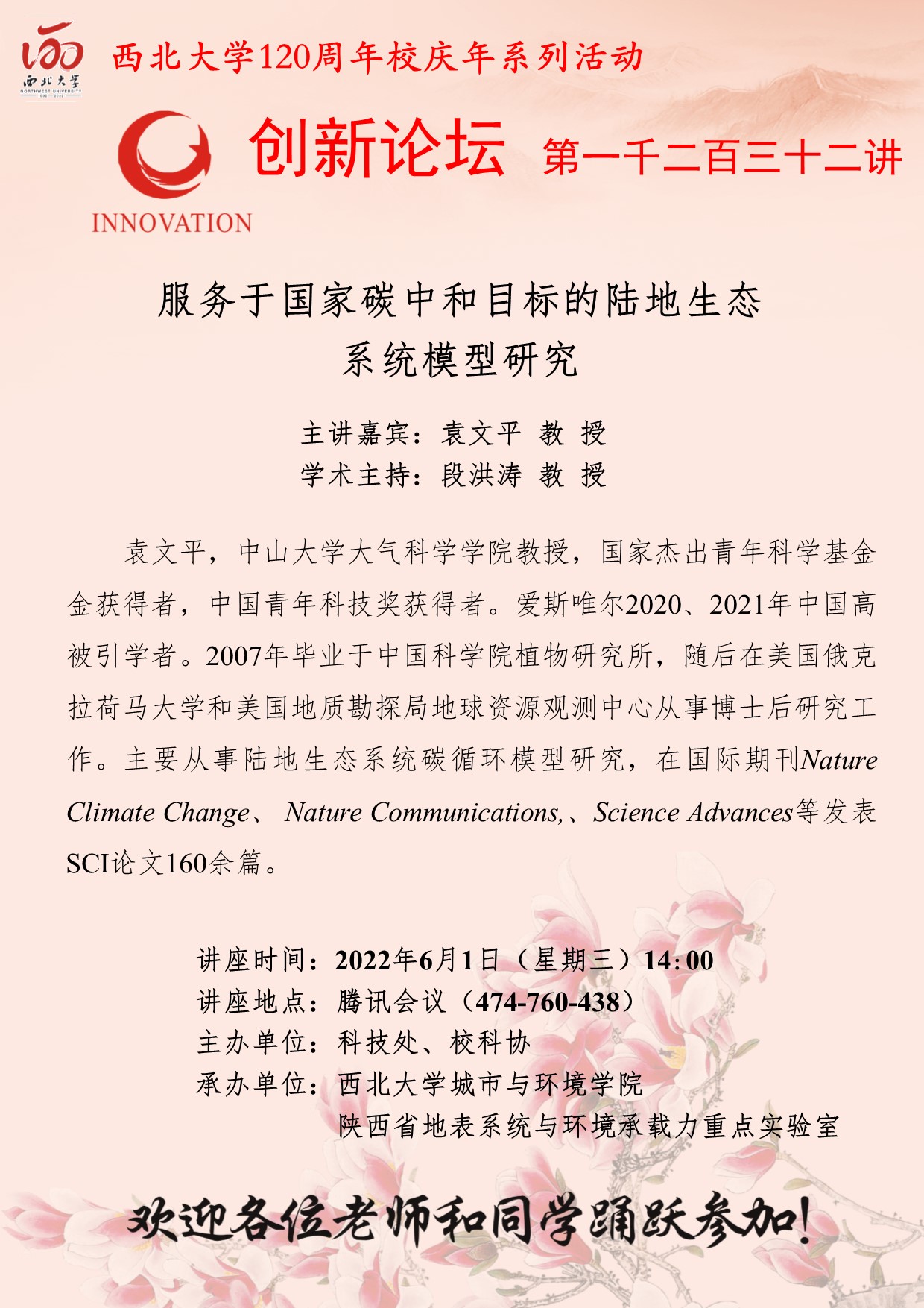 袁文平 教 授 九游会在线登录官网创新论坛第一千二百三十二讲暨120周年校庆年系列活动:服务于国家碳中和目标的陆地生态系统模型研究 讲座时间 2022年6月1日(星期三)14:00 讲座地点 腾讯会议(474-760-438) 讲座人介绍 袁文平 教 授 讲座内容