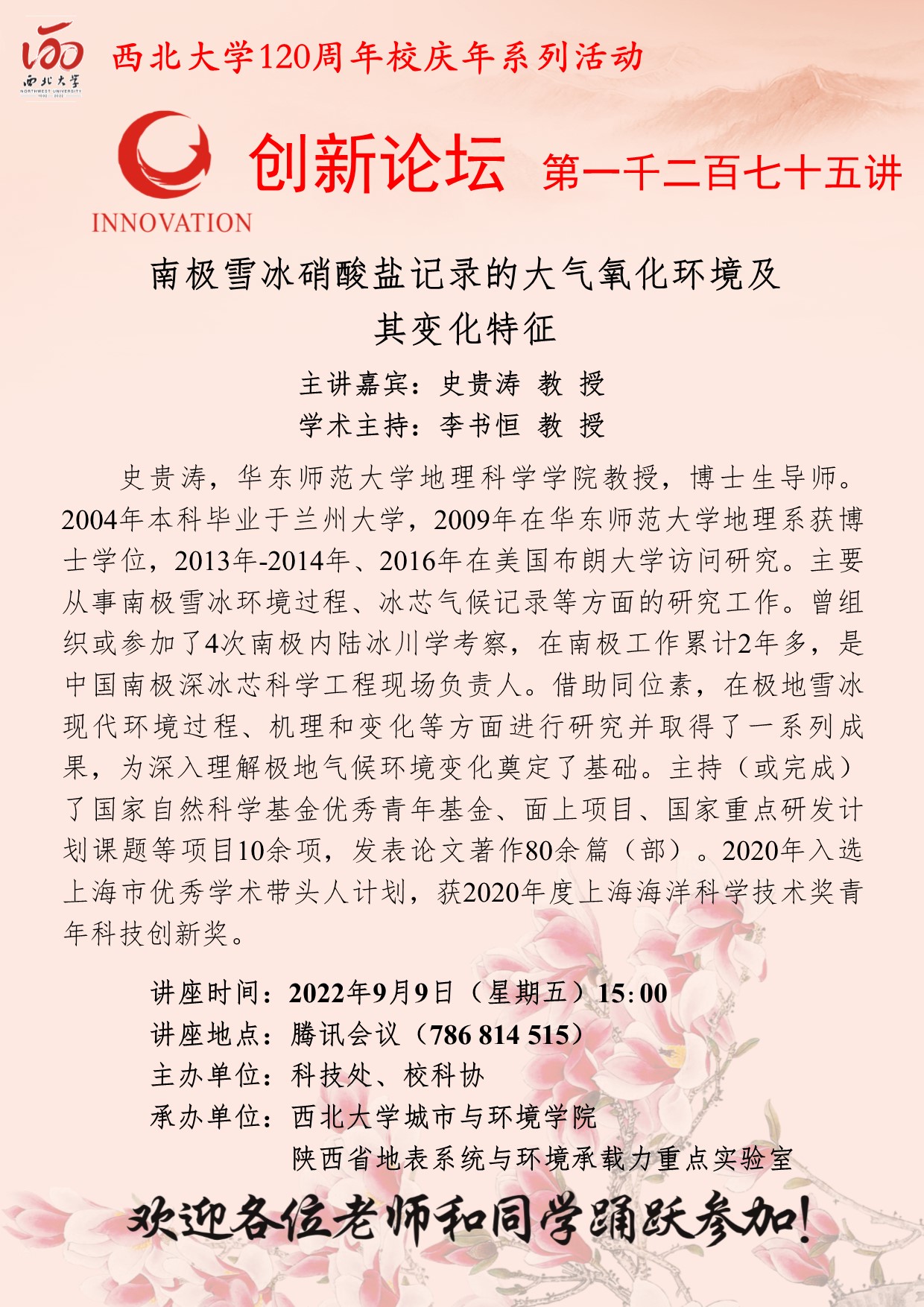 史贵涛 教 授 九游会在线登录官网创新论坛第一千二百七十五讲暨120周年校庆年系列活动:南极雪冰硝酸盐记录的大气氧化环境及其变化特征 讲座时间 2022年9月9日(星期五)15:00 讲座地点 讲座地点:腾讯会议(786 814 515) 讲座人介绍 史贵涛 教 授 讲座内容
