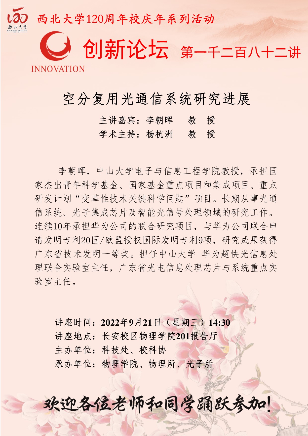 李朝晖 教授 九游会在线登录官网创新论坛第一千二百八十二讲暨120周年校庆年系列活动::空分复用光通信系统研究进展 讲座时间 2022年9月21日(星期三) 14:30 讲座地点 物理学院201报告厅 讲座人介绍 李朝晖 教授 讲座内容