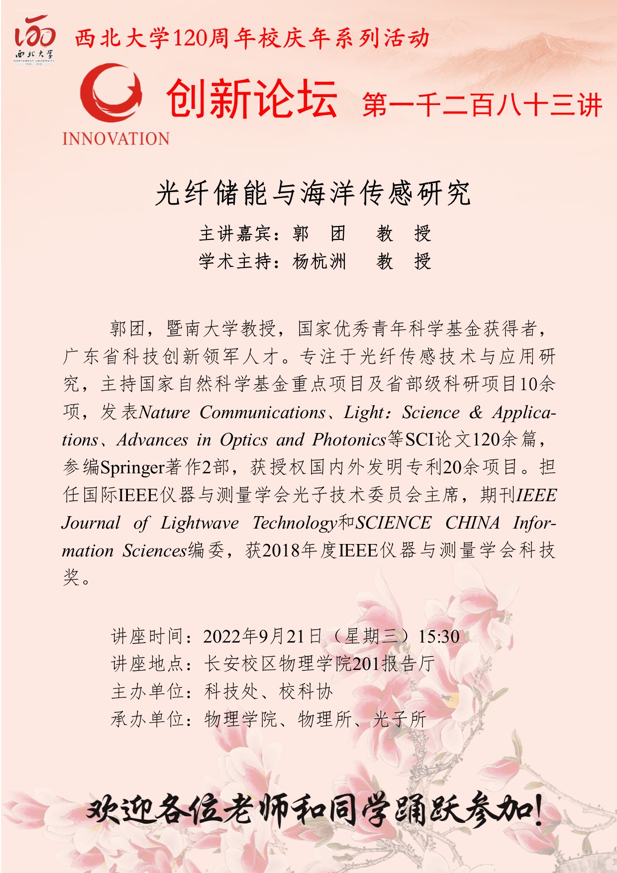郭团 教授 九游会在线登录官网创新论坛第一千二百八十三讲暨120周年校庆年系列活动::光纤储能与海洋传感研究 讲座时间 2022年9月21日(星期三) 15:30 讲座地点 物理学院201报告厅 讲座人介绍 郭团 教授 讲座内容