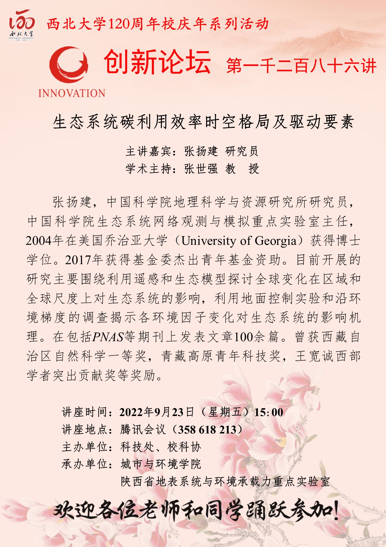 张扬建 研究员 九游会在线登录官网创新论坛第一千二百八十六讲暨120周年校庆年系列活动::生态系统碳利用效率时空格局及驱动要素 讲座时间 2022年9月23日(星期五)15:00 讲座地点 腾讯会议(358 618 213) 讲座人介绍 张扬建 研究员 讲座内容