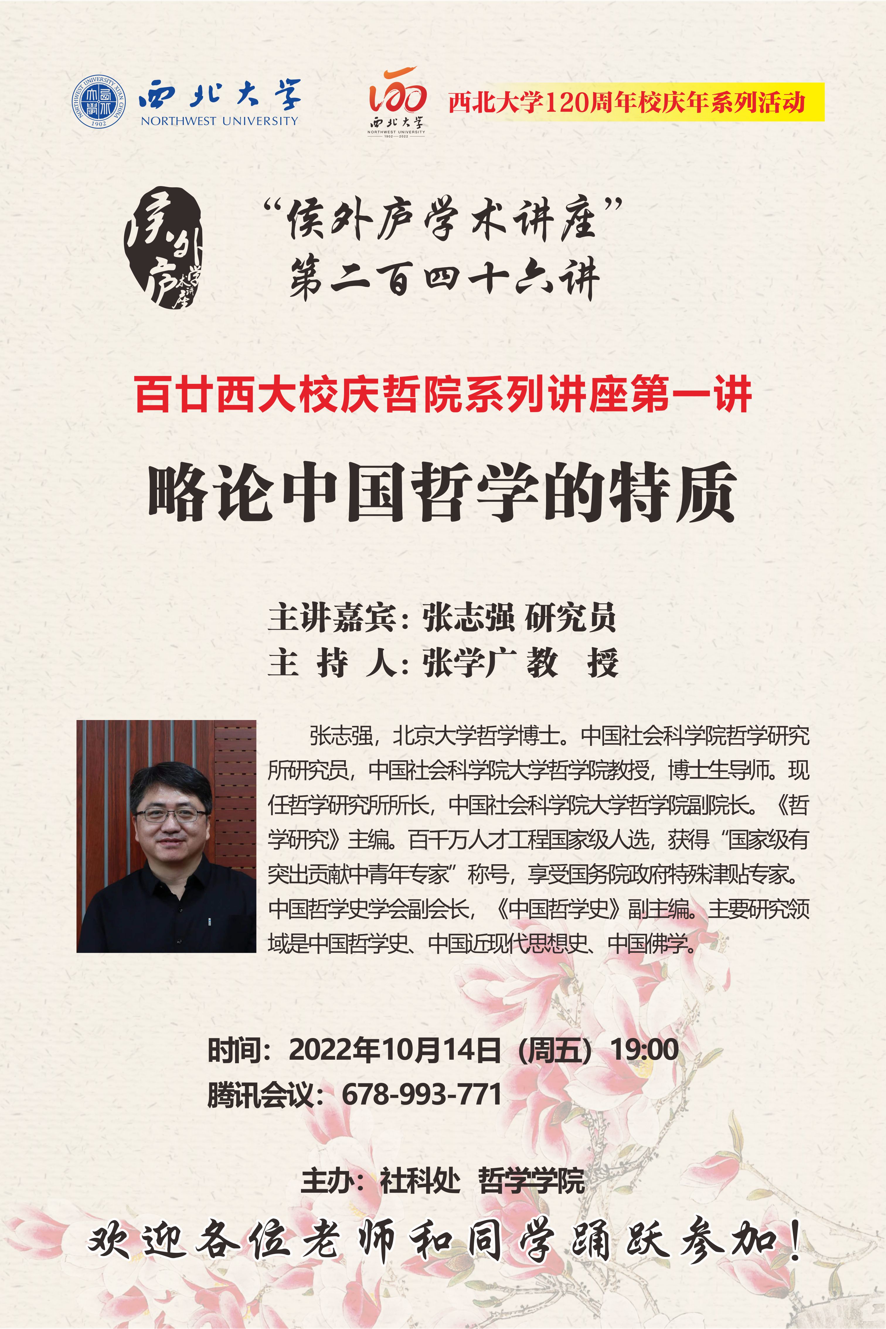 侯外庐学术讲座第二百四十六讲暨120周年校庆年系列活动:略论中国哲学的特质