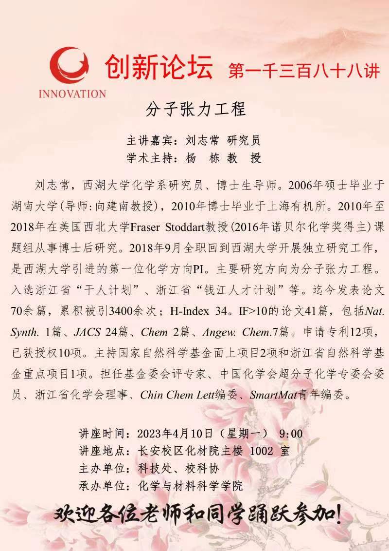 刘志常 研究员 九游会在线登录官网创新论坛第一千三百八十八讲:分子张力工程 讲座时间 2023年4月10日(星期一) 9:00 讲座地点 长安校区化材院主楼1002 讲座人介绍 刘志常 研究员 讲座内容