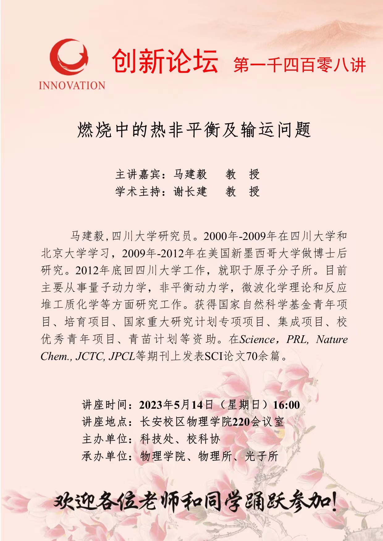 马建毅 教 授 九游会在线登录官网创新论坛第一千四百零八讲:燃烧中的热非平衡及输运问题 讲座时间 2023年5月14日(星期日)16:00 讲座地点 长安校区物理学院220会议室 讲座人介绍 马建毅 教 授 讲座内容