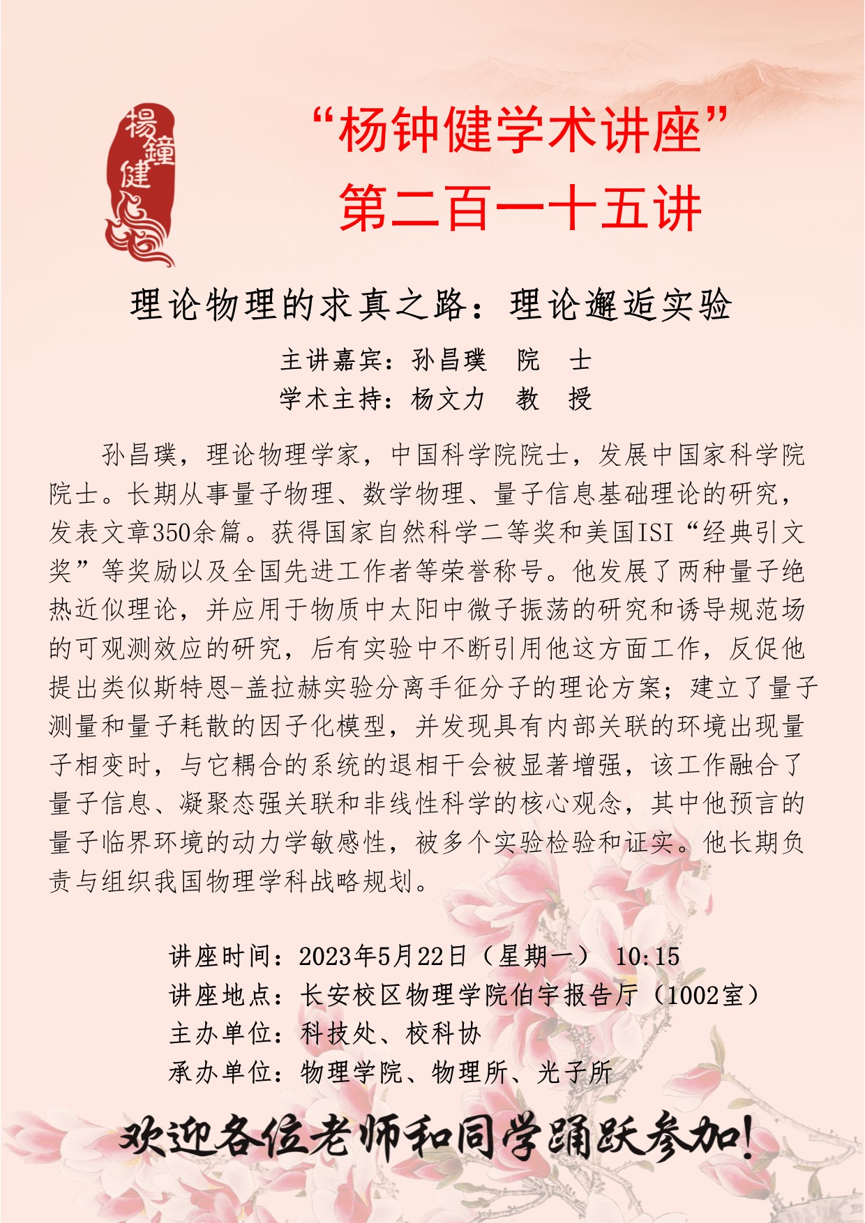 长安校区物理学院伯宇报告厅(1002室)