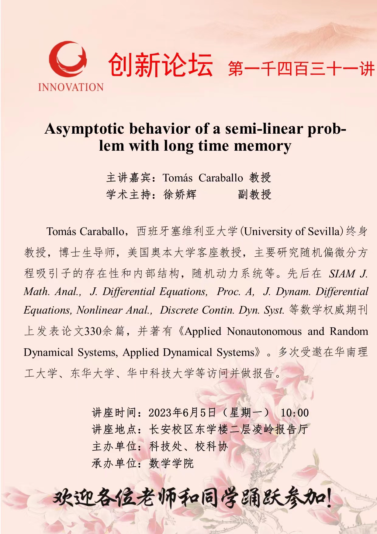 Tomás Caraballo 教授 九游会在线登录官网创新论坛第一千四百三十一讲:Asymptotic behavior of a semi-linear problem with long time memory 讲座时间 2023年6月5日(星期一) 10:00 讲座地点 长安校区东学楼二层凌岭报告厅 讲座人介绍 Tomás Caraballo 教授 讲座内容