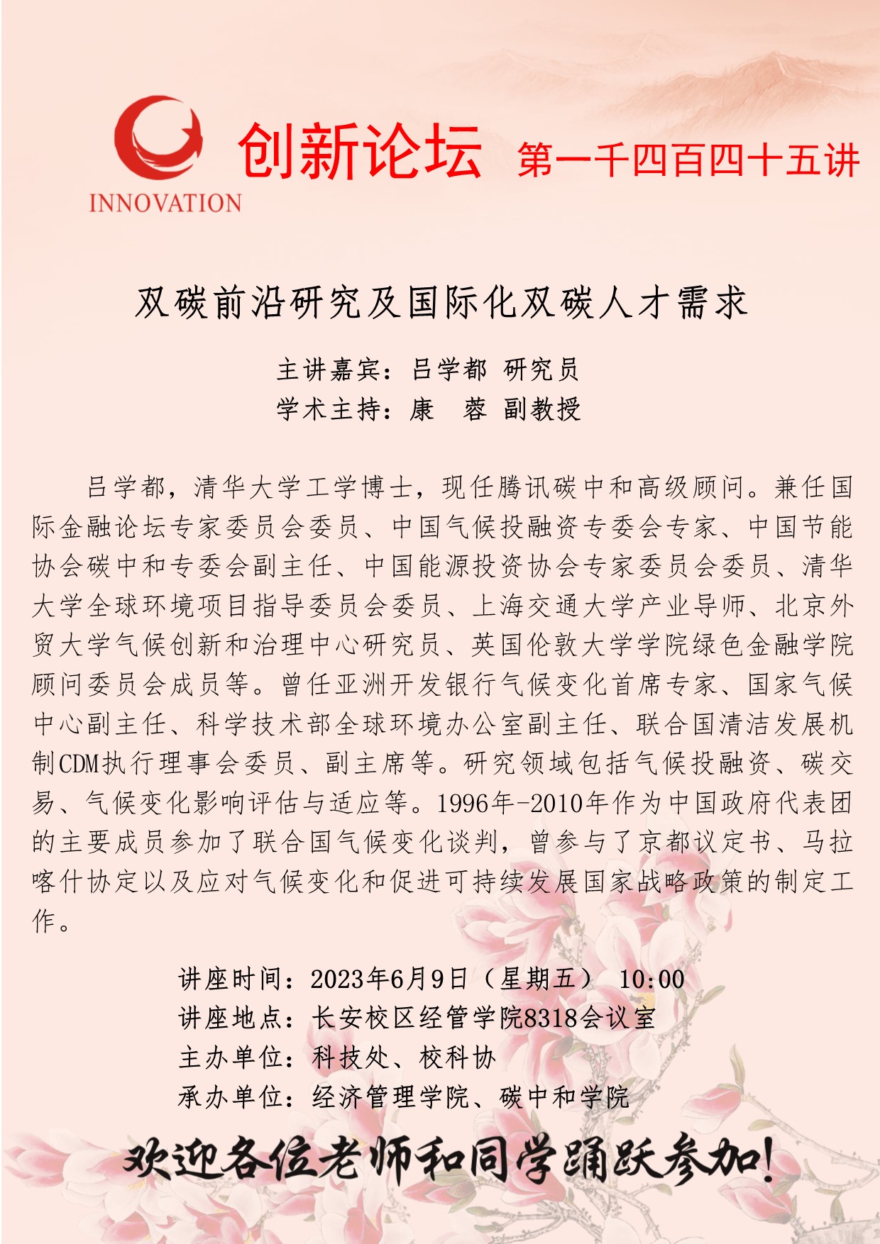 吕学都 研究员 九游会在线登录官网创新论坛第一千四百四十五讲:双碳前沿研究及国际化双碳人才需求 讲座时间 2023年6月9日(星期五) 10:00 讲座地点 长安校区经管学院8318会议室 讲座人介绍 吕学都 研究员 讲座内容