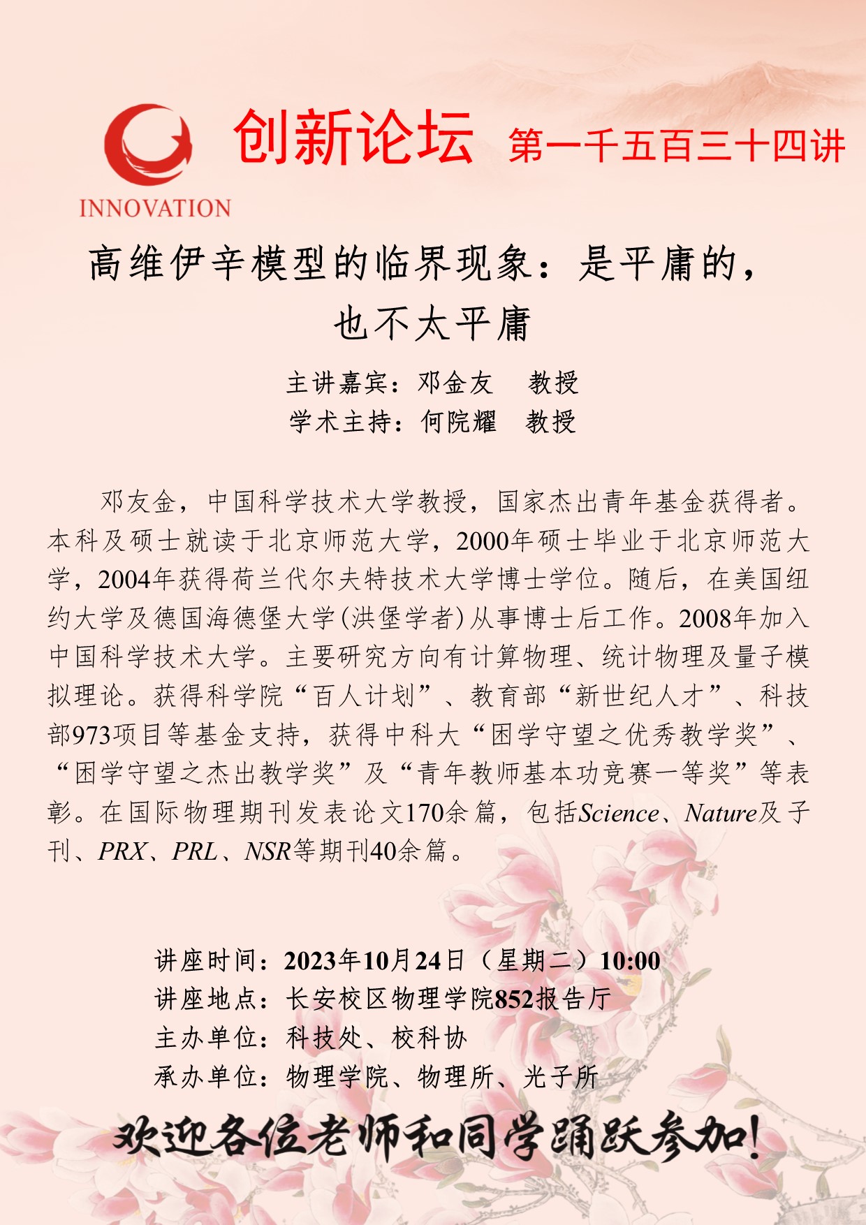 邓金友 教授 九游会在线登录官网创新论坛第一千五百三十四讲:高维伊辛模型的临界现象:是平庸的, 也不太平庸 讲座时间 2023年10月24日(星期二)10:00 讲座地点 长安校区物理学院852报告厅 讲座人介绍 邓金友 教授 讲座内容