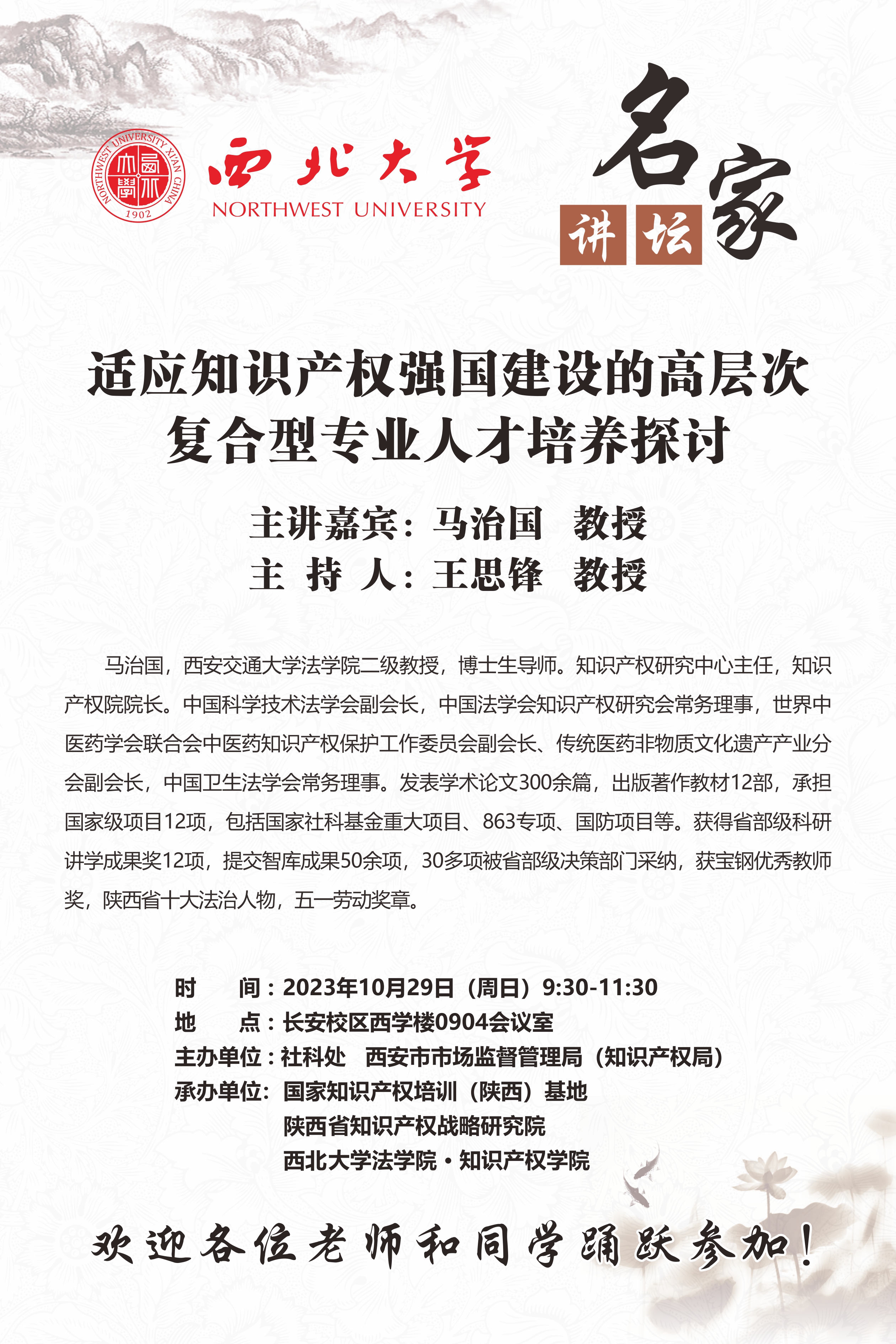 名家讲坛:适应知识产权强国建设的高层次复合型专业人才培养探讨