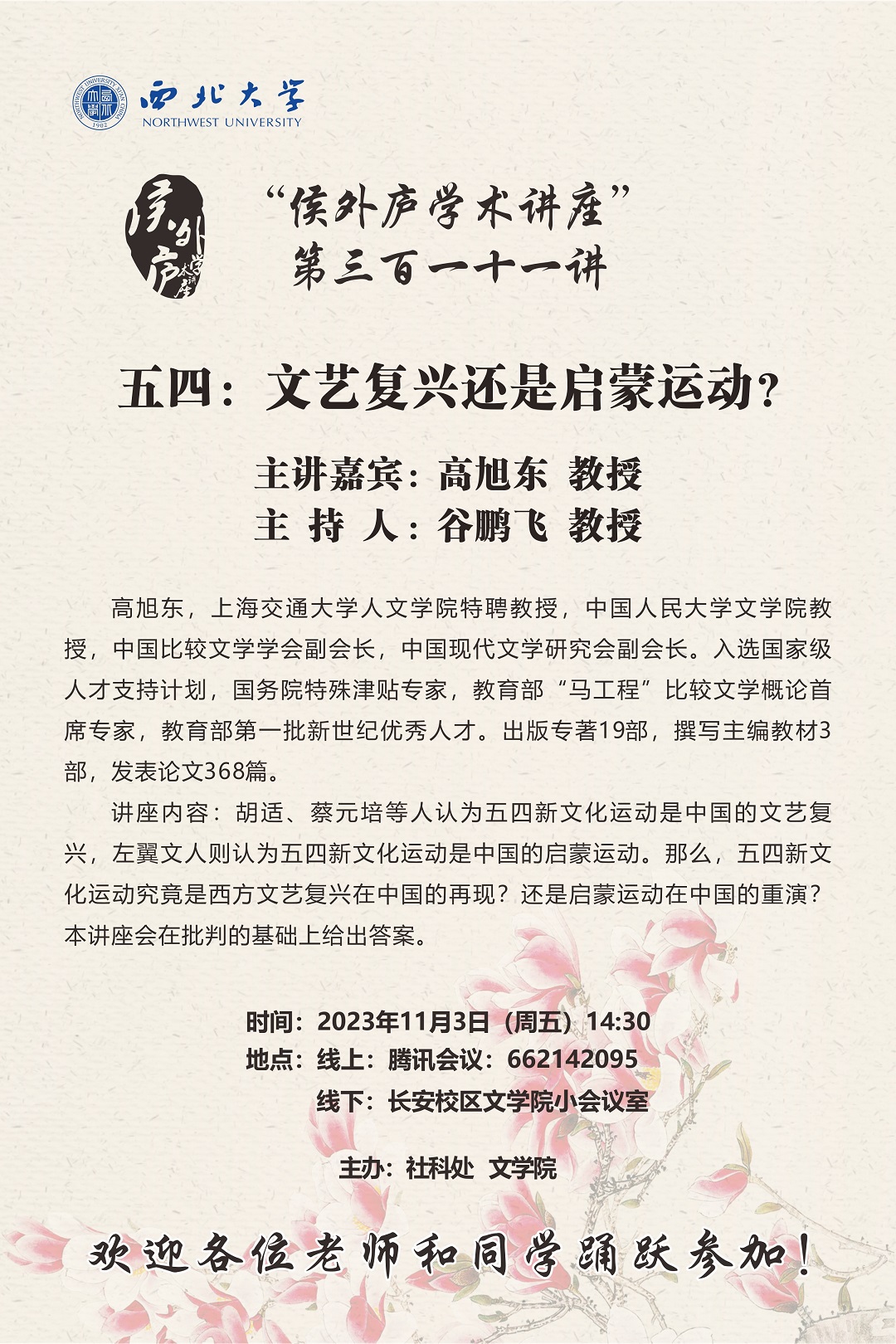 侯外庐学术讲座第三百一十一讲:五四:文艺复兴还是启蒙运动?