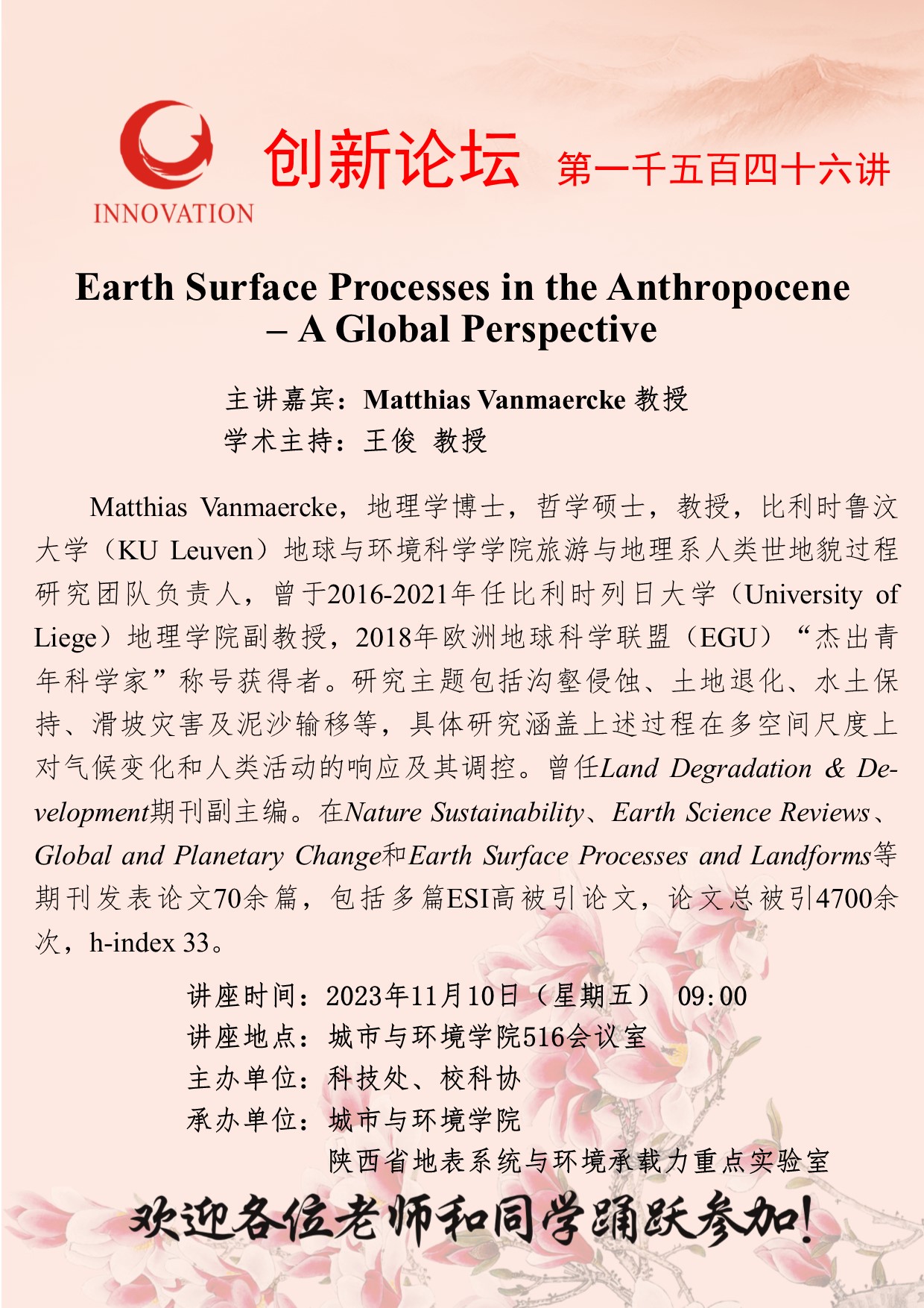 Matthias Vanmaercke 教授 九游会在线登录官网创新论坛第一千五百四十六讲:Earth Surface Processes in the Anthropocene – A Global Perspective 讲座时间 2023年11月10日(星期五) 09:00 讲座地点 城市与环境学院516会议室 讲座人介绍 Matthias Vanmaercke 教授 讲座内容