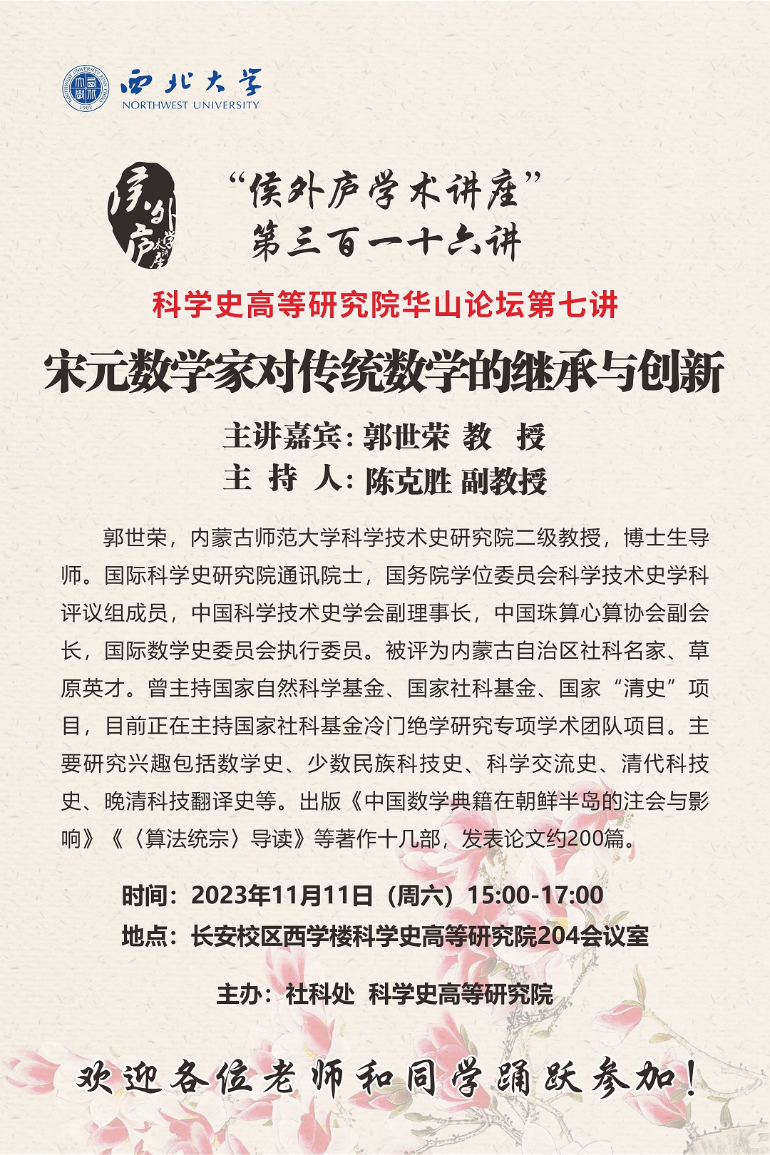 长安校区西学楼科学史高等研究院204会议室