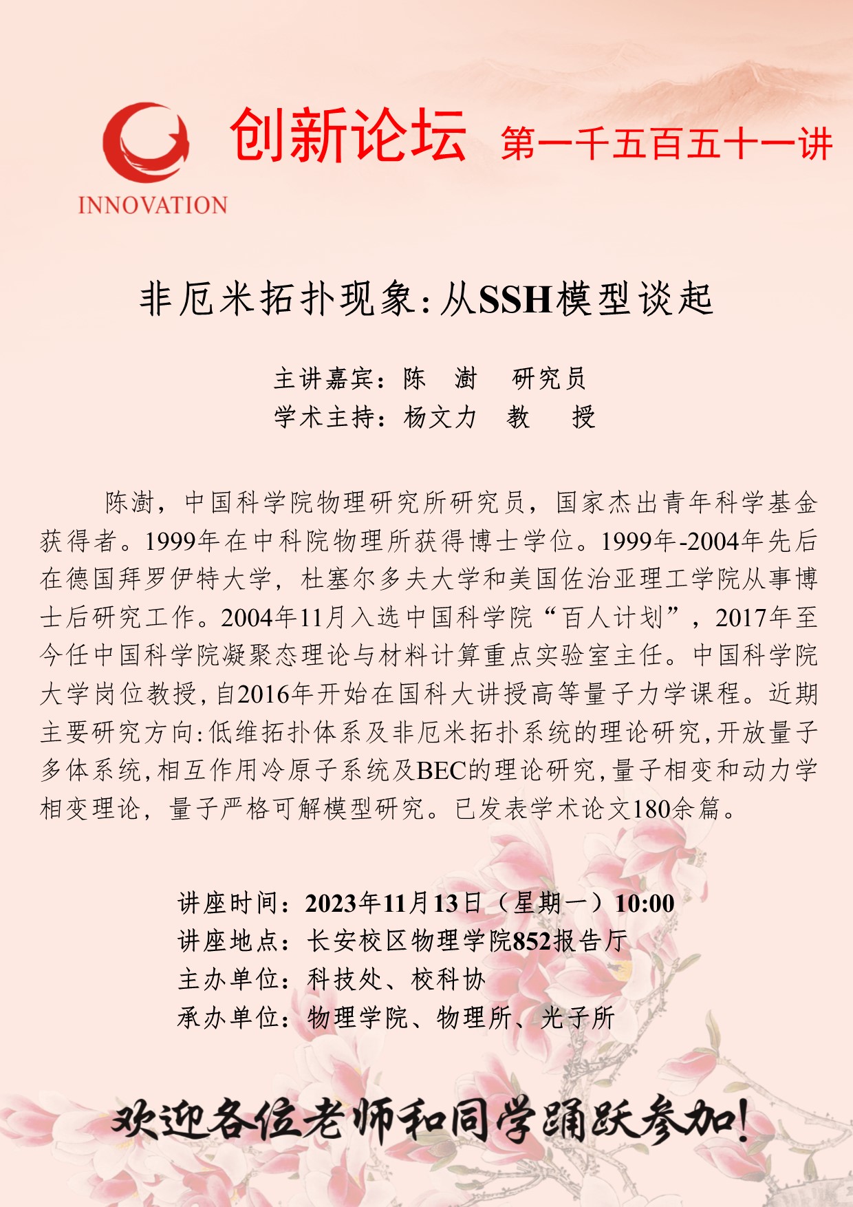 陈澍 研究员 九游会在线登录官网创新论坛第一千五百五十一讲:非厄米拓扑现象:从SSH模型谈起 讲座时间 2023年11月13日(星期一)10:00 讲座地点 长安校区物理学院852报告厅 讲座人介绍 陈澍 研究员 讲座内容