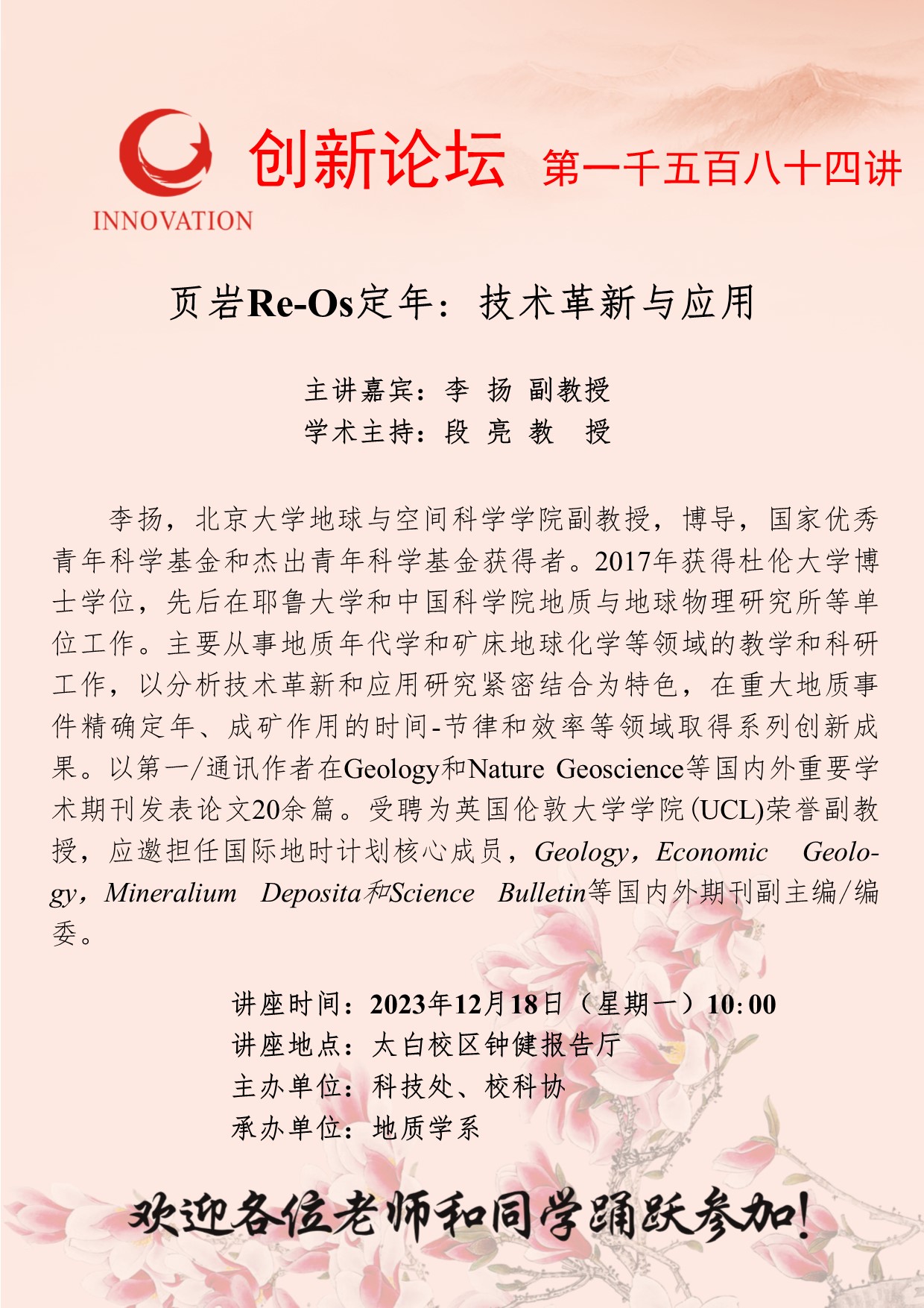 李扬 副教授 九游会在线登录官网创新论坛第一千五百八十四讲:页岩Re-Os定年: 技术革新与应用 讲座时间 2023年12月18日(星期一)10:00 讲座地点 太白校区钟健报告厅 讲座人介绍 李扬 副教授 讲座内容
