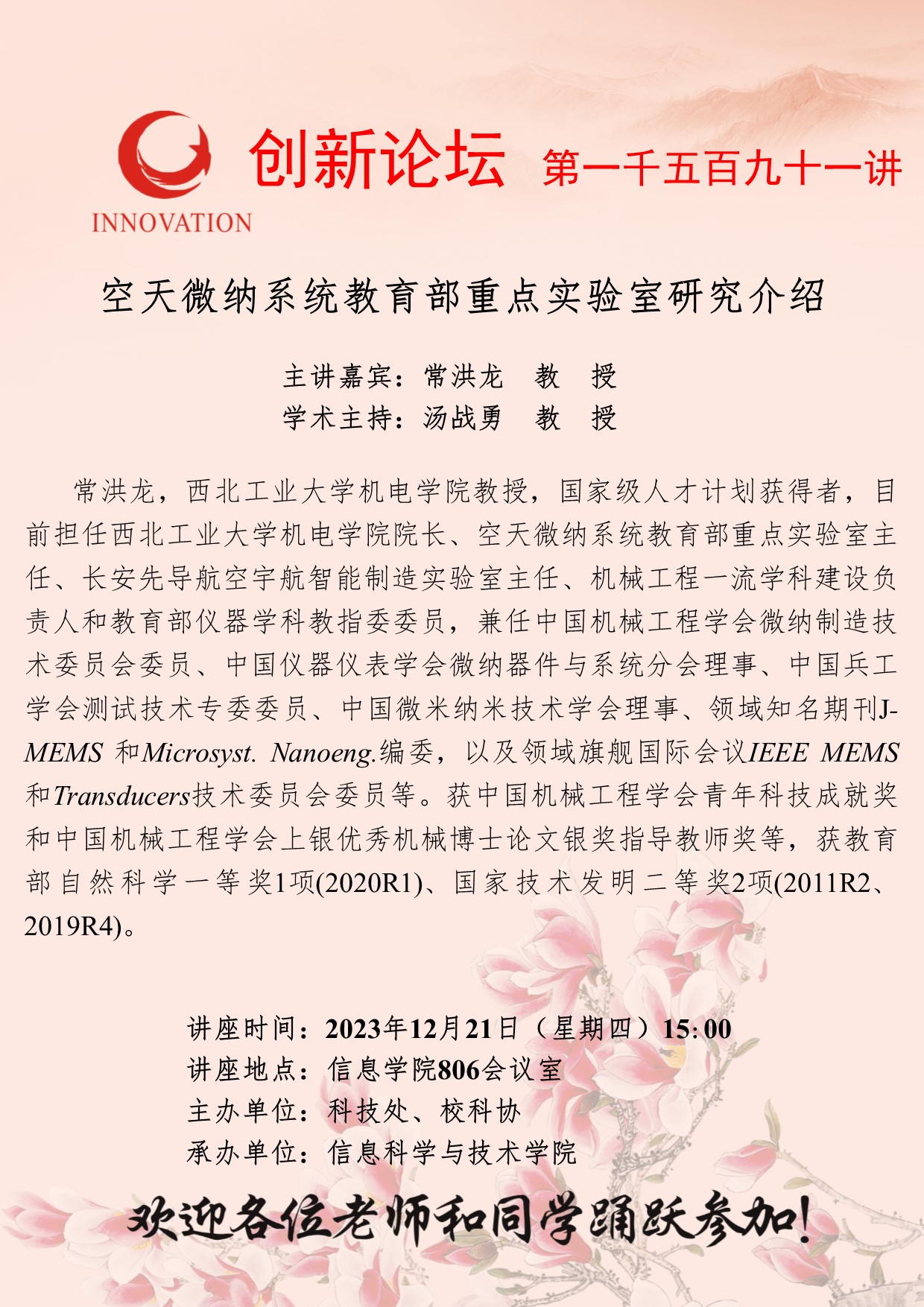 常洪龙 教授 九游会在线登录官网创新论坛第一千五百九十一讲:空天微纳系统教育部重点实验室研究介绍 讲座时间 2023年12月21日(星期四)15:00 讲座地点 信息学院806会议室 讲座人介绍 常洪龙 教授 讲座内容
