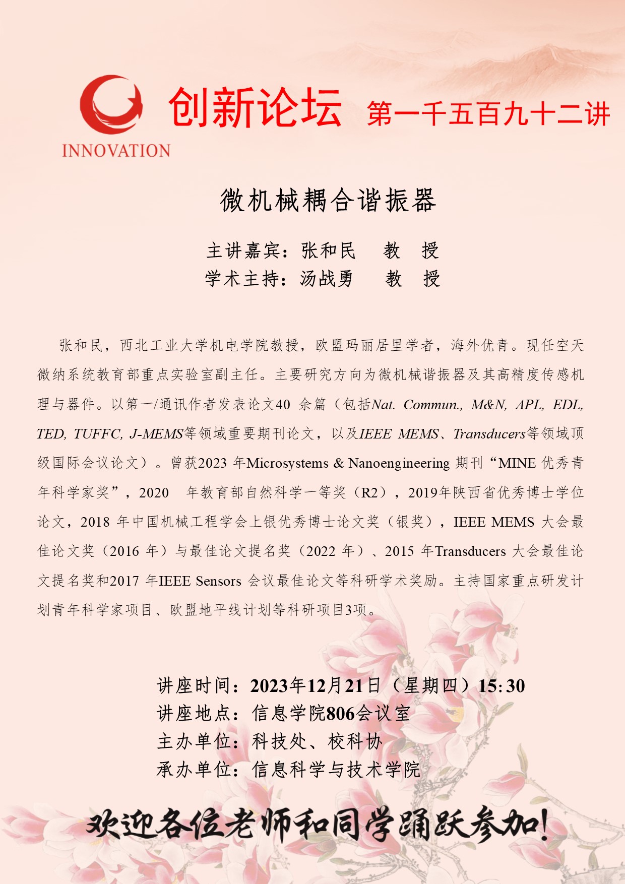 九游会在线登录官网创新论坛第一千五百九十二讲:微机械耦合谐振器