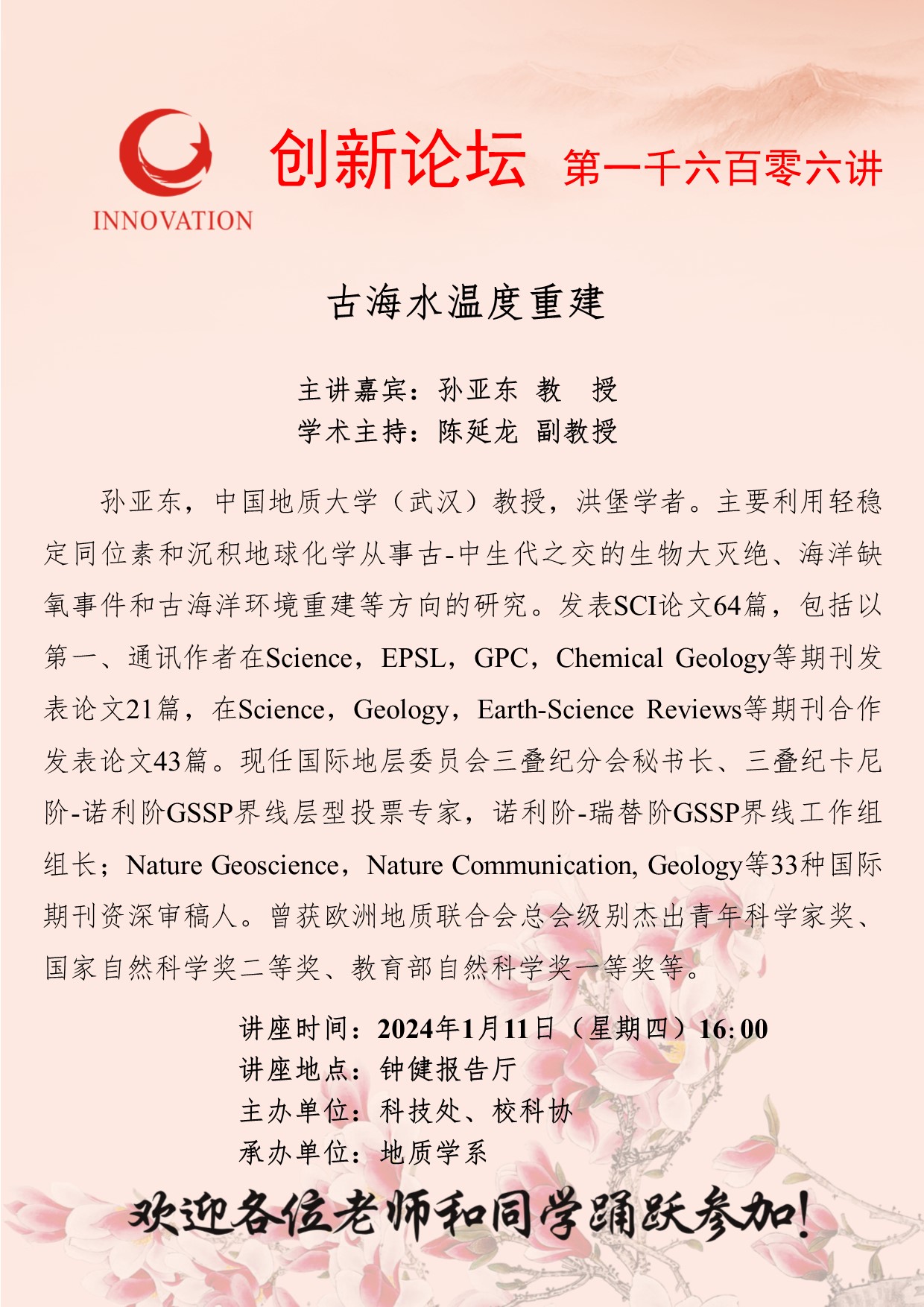 九游会在线登录官网创新论坛第一千六百零六讲: 古海水温度重建