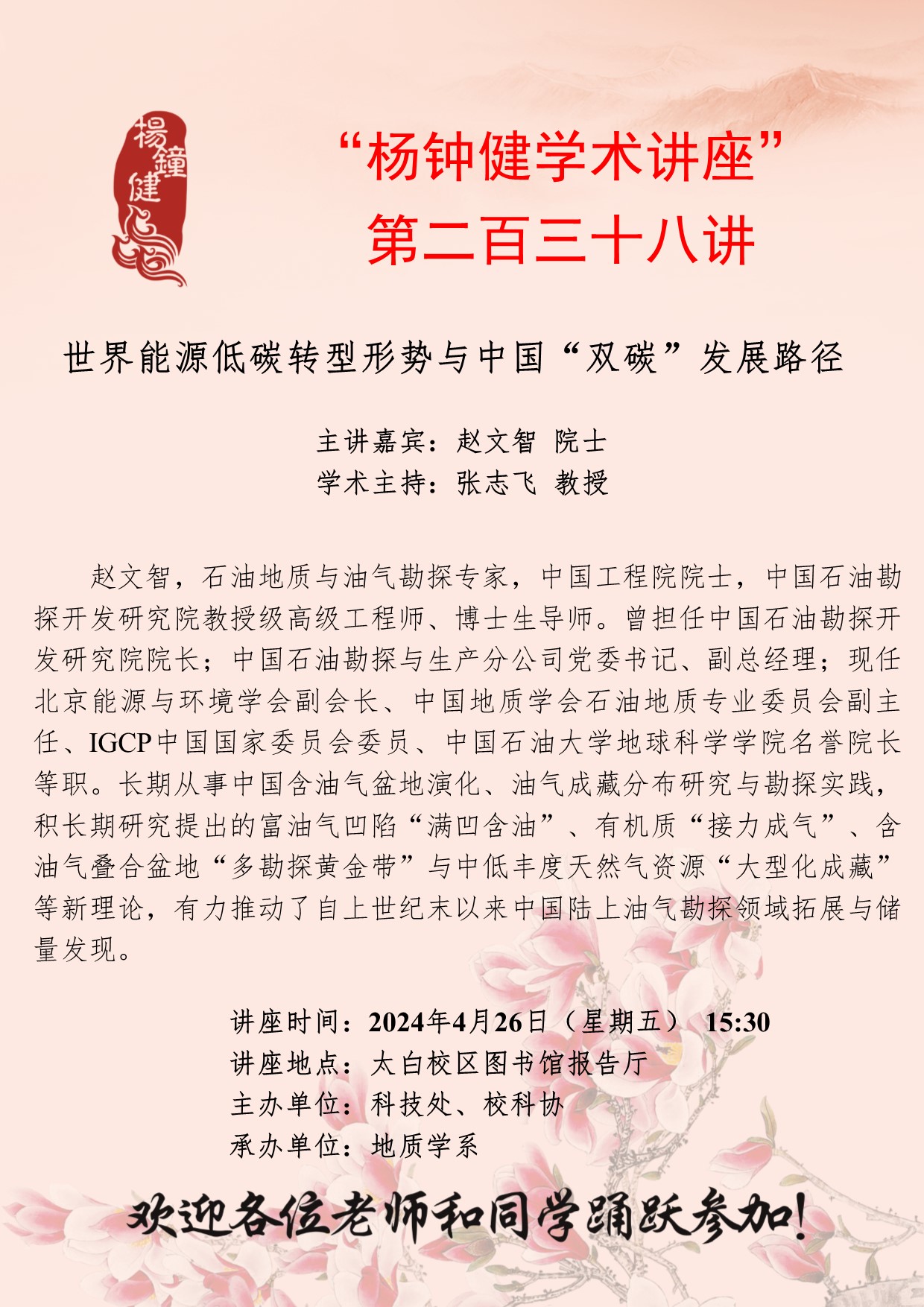 “杨钟健学术讲座”第二百三十八讲:世界能源低碳转型形势与中国“双碳”发展路径