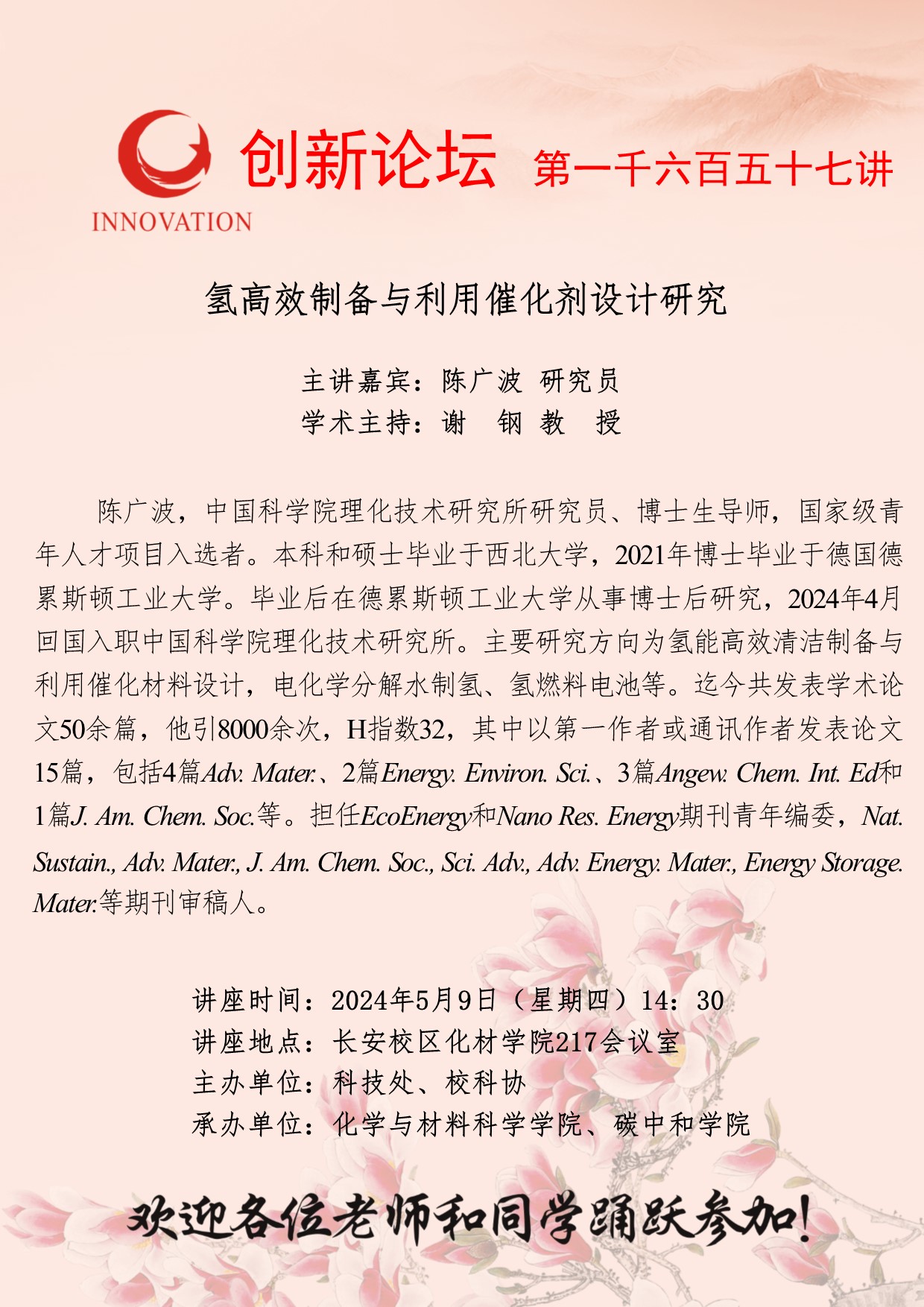 陈广波 研究员 九游会在线登录官网创新论坛第一千六百五十七讲:氢高效制备与利用催化剂设计研究 讲座时间 2024年5月9日(星期四)14:30 讲座地点 长安校区化材学院217会议室 讲座人介绍 陈广波 研究员 讲座内容