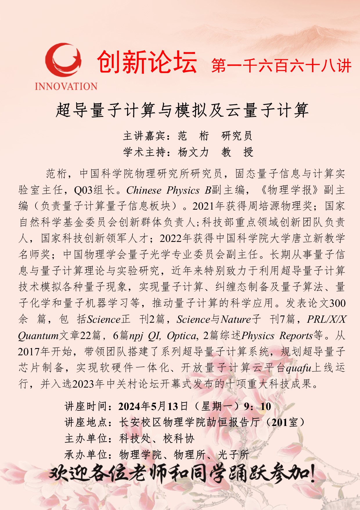 范桁 研究员 九游会在线登录官网创新论坛第一千六百六十八讲:超导量子计算与模拟及云量子计算 讲座时间 2024年5月13日(星期一)9:10 讲座地点 长安校区物理学院劼恒报告厅(201室) 讲座人介绍 范桁 研究员 讲座内容