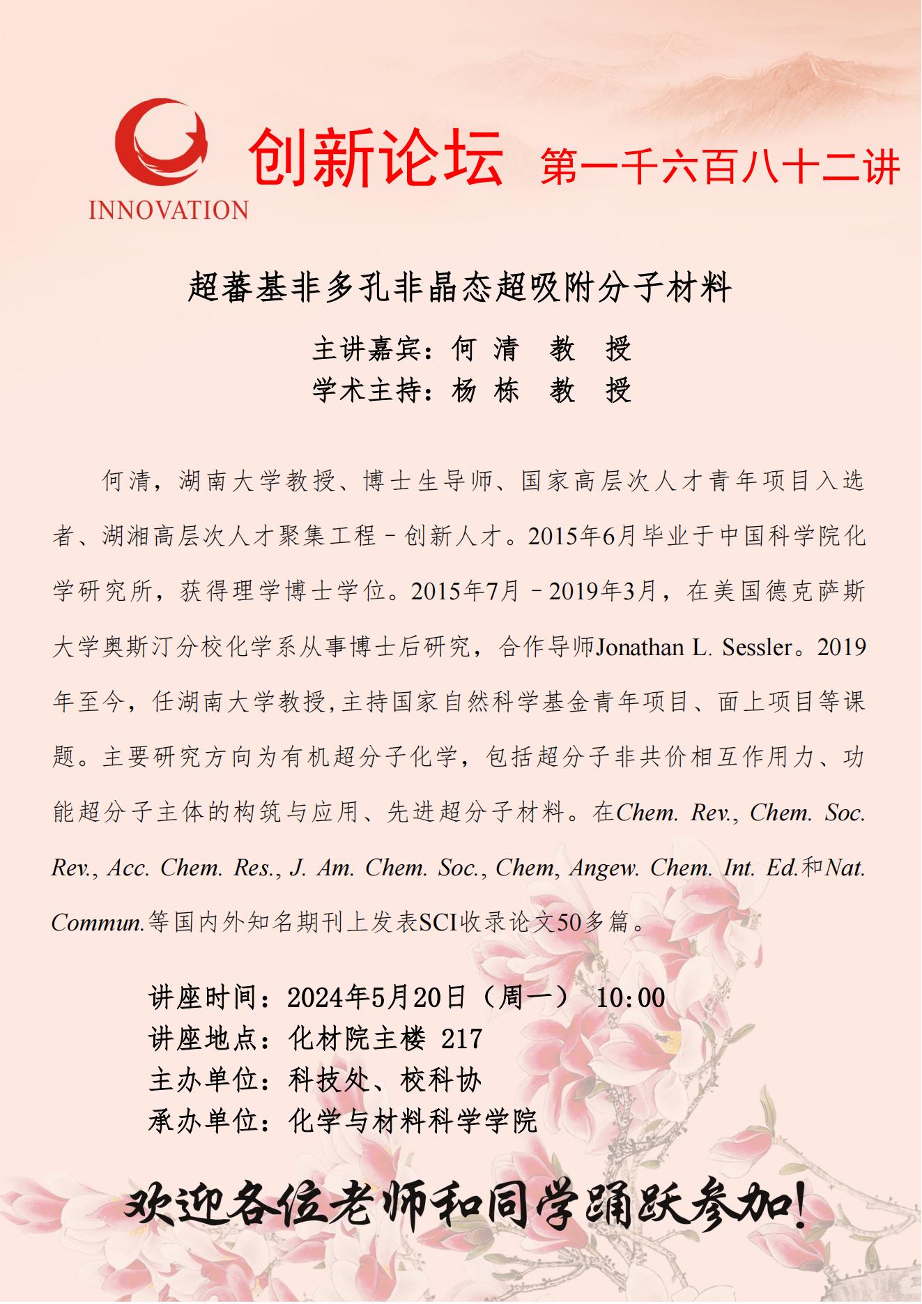 何清 教授 九游会在线登录官网创新论坛第一千六百八十二讲:超蕃基非多孔非晶态超吸附分子材料 讲座时间 2024年5月20日(星期一) 10:00 讲座地点 长安校区化材院主楼 217 讲座人介绍 何清 教授 讲座内容