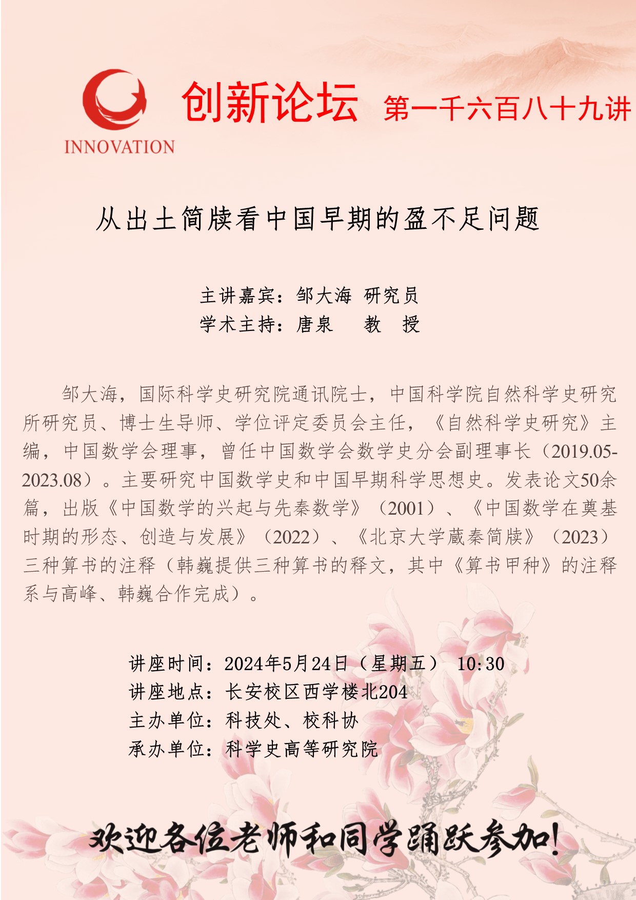 邹大海 研究员 九游会在线登录官网创新论坛第一千六百八十九讲:从出土简牍看中国早期的盈不足问题 讲座时间 2024年5月24日(星期五) 10:30 讲座地点 长安校区西学楼北204 讲座人介绍 邹大海 研究员 讲座内容