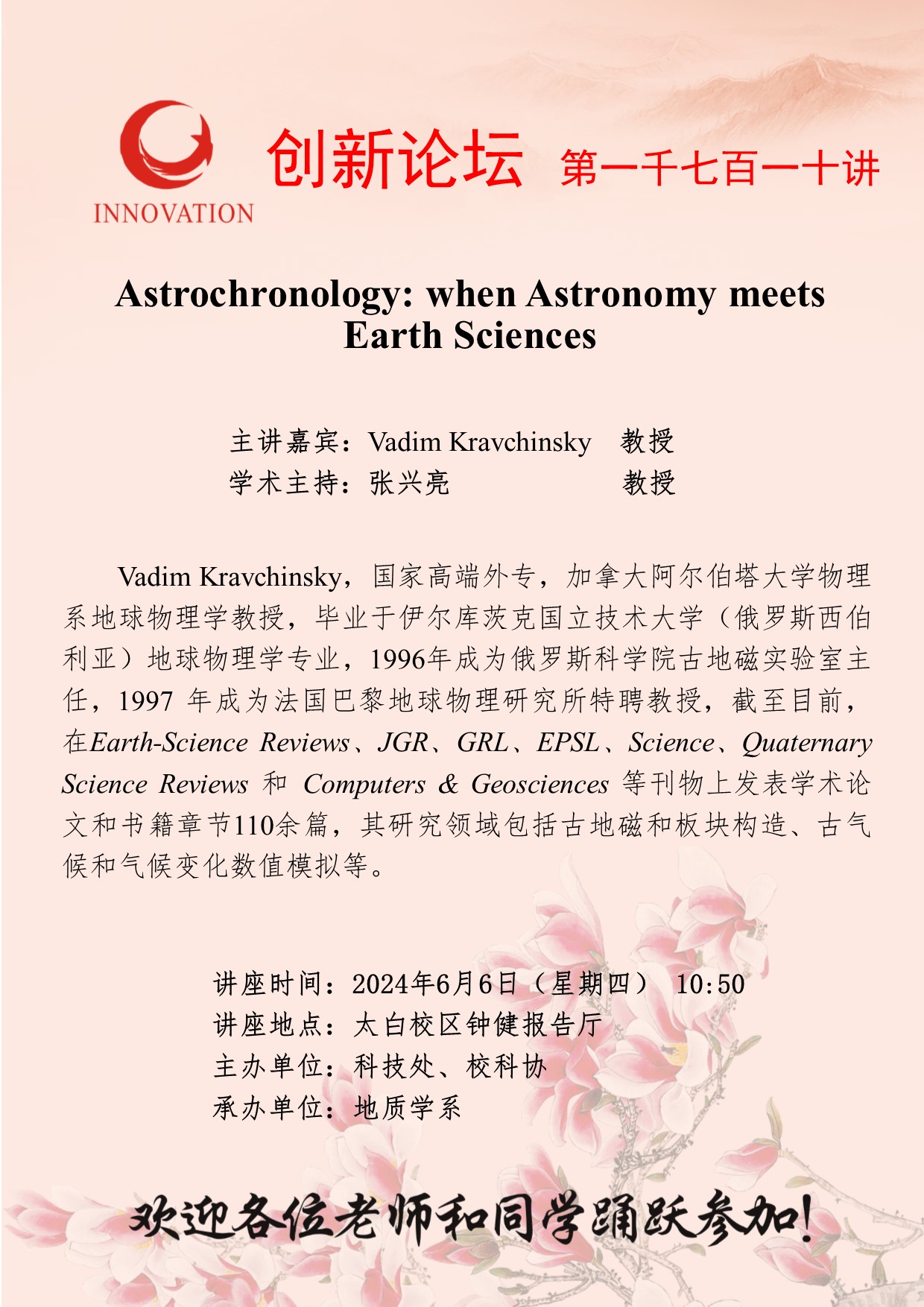 Vadim Kravchinsky 教授 九游会在线登录官网创新论坛第一千七百一十讲:Astrochronology: when Astronomy meets Earth Sciences 讲座时间 2024年6月6日(星期四) 10:50 讲座地点 太白校区钟健报告厅 讲座人介绍 Vadim Kravchinsky 教授 讲座内容