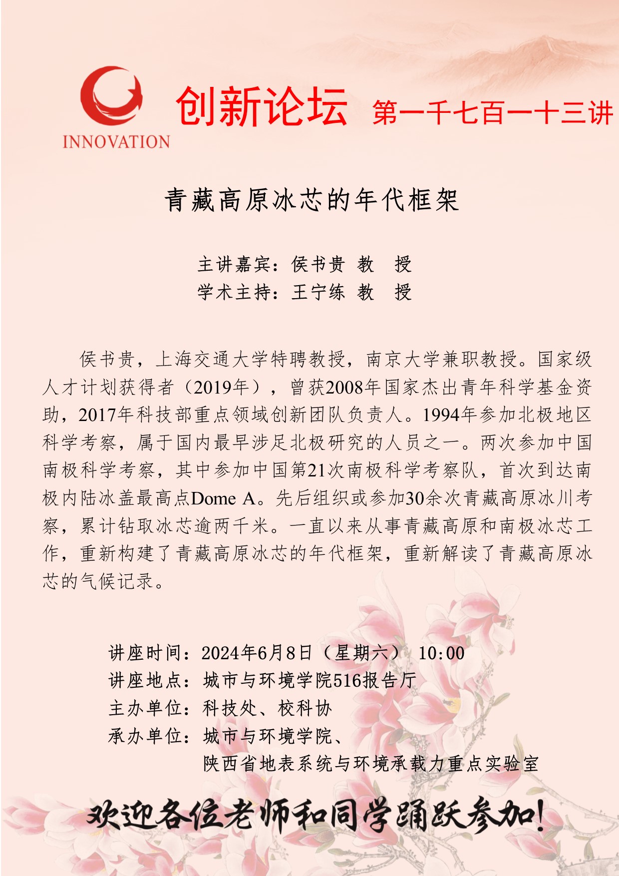 侯书贵 教授 九游会在线登录官网创新论坛第一千七百一十三讲:青藏高原冰芯的年代框架 讲座时间 2024年6月8日(星期六) 10:00 讲座地点 城市与环境学院516报告厅 讲座人介绍 侯书贵 教授 讲座内容