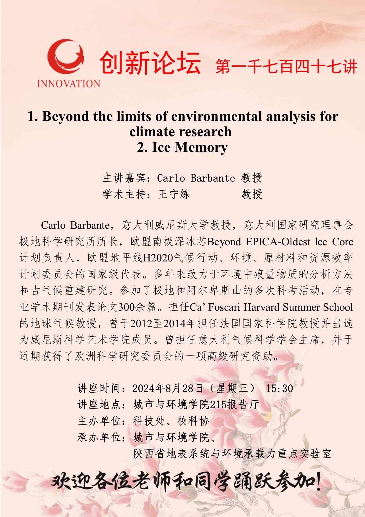 Carlo Barbante 教授 九游会在线登录官网创新论坛第一千七百四十七讲:1. Beyond the limits of environmental analysis for climate research 2. Ice Memory 讲座时间 2024年8月28日(星期三) 15:30 讲座地点 城市与环境学院215报告厅 讲座人介绍 Carlo Barbante 教授 讲座内容