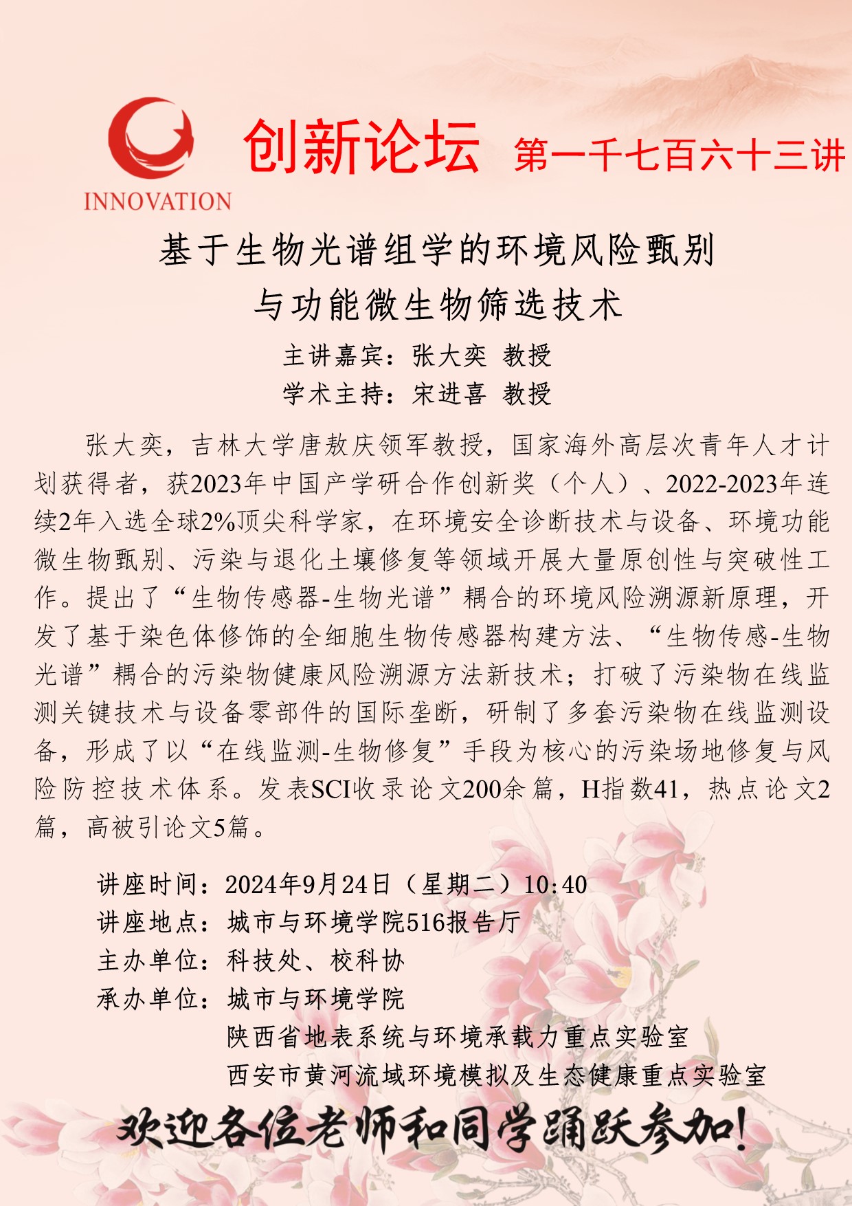 张大奕 教授 九游会在线登录官网创新论坛第一千七百六十三讲:基于生物光谱组学的环境风险甄别与功能微生物筛选技术 讲座时间 2024年9月24日(星期二)10:40 讲座地点 城市与环境学院516报告厅 讲座人介绍 张大奕 教授 讲座内容