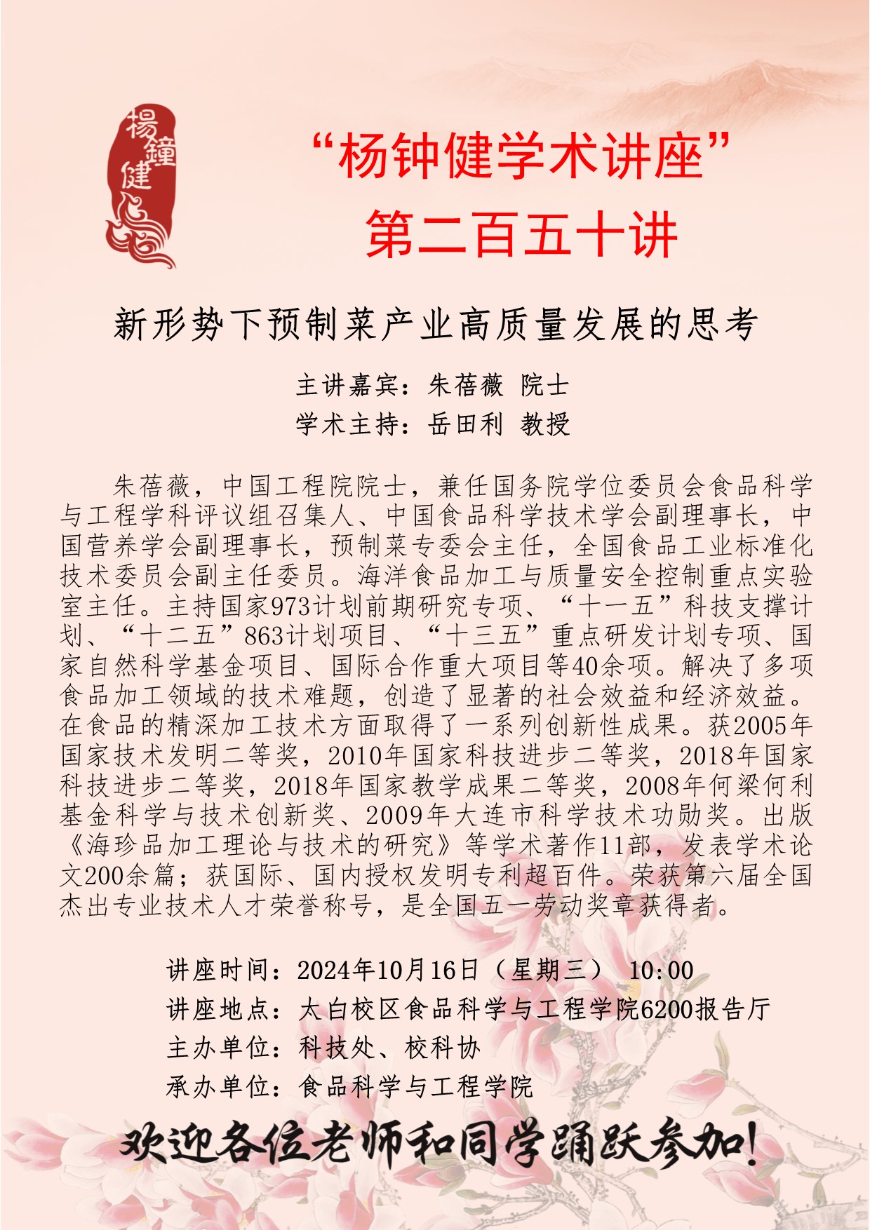 “杨钟健学术讲座”第二百五十讲:新形势下预制菜产业高质量发展的思考