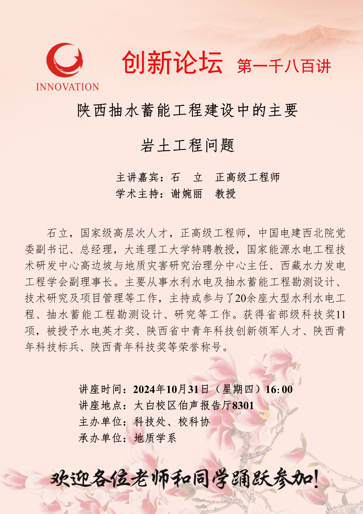 石 立 正高级工程师 九游会在线登录官网创新论坛第一千八百讲:陕西抽水蓄能工程建设中的主要岩土工程问题 讲座时间 2024年10月31日(星期四)16:00 讲座地点 太白校区伯声报告厅8301 讲座人介绍 石 立 正高级工程师 讲座内容