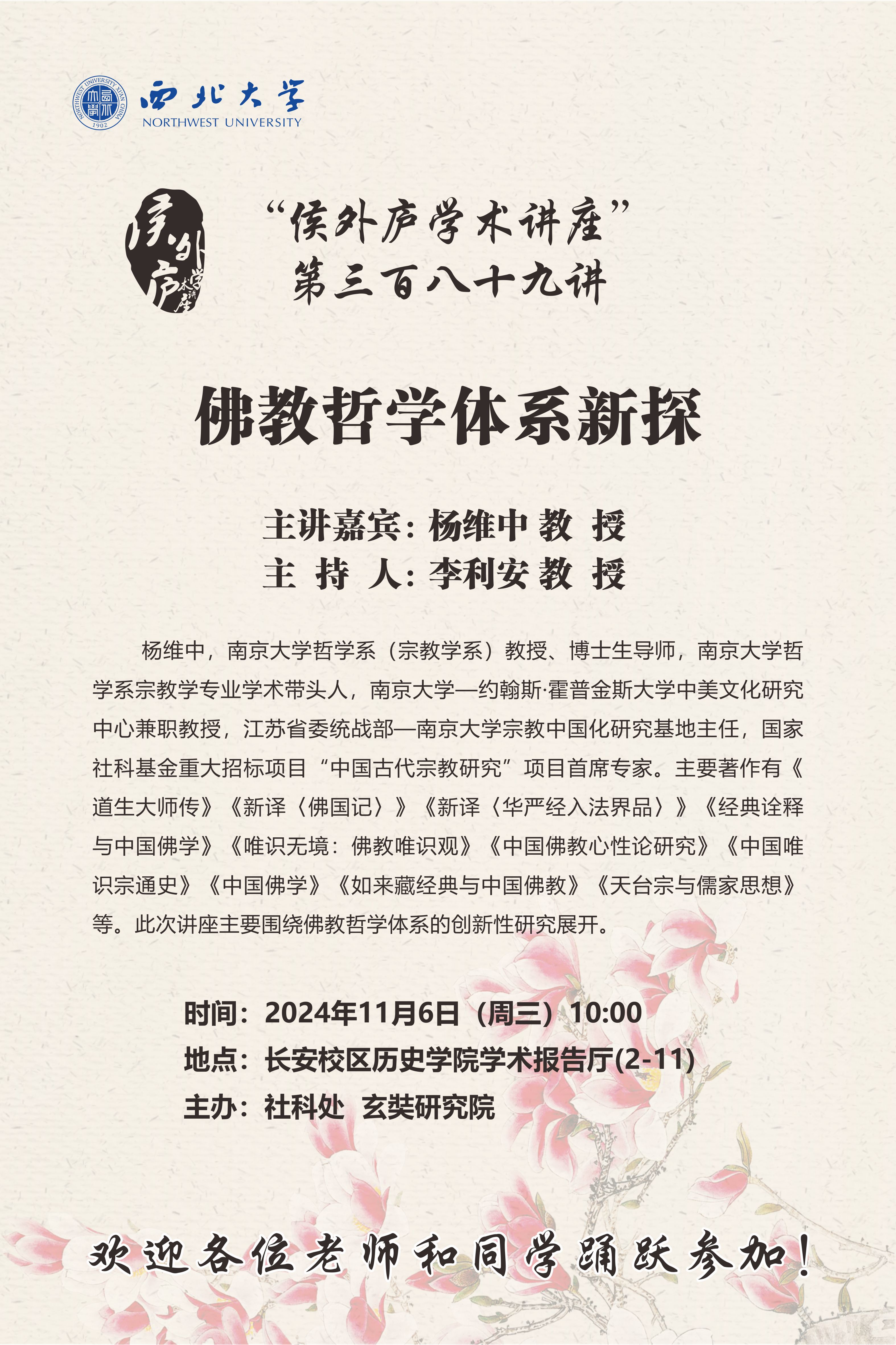 “侯外庐学术讲座”第三百八十九讲:佛教哲学体系新探