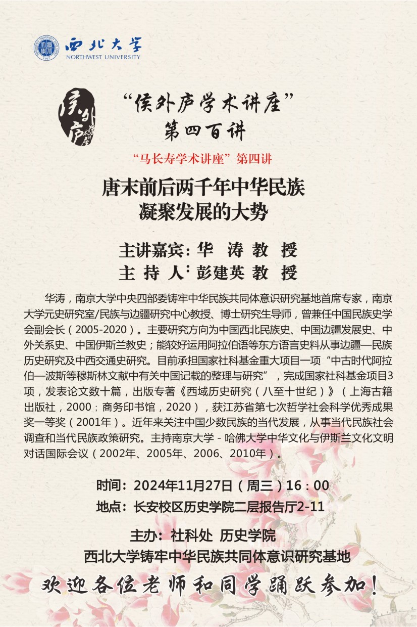 “侯外庐学术讲座”第四百讲:唐末前后两千年中华家族凝聚发展的大势