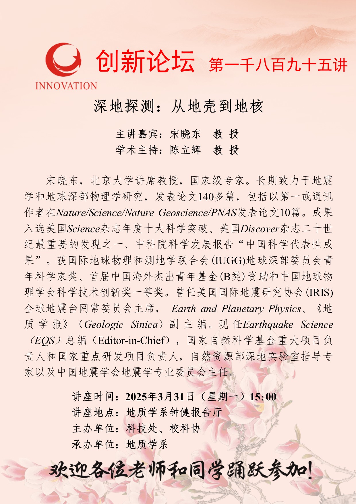 九游会在线登录官网创新论坛第一千八百九十五讲:深地探测:从地壳到地核